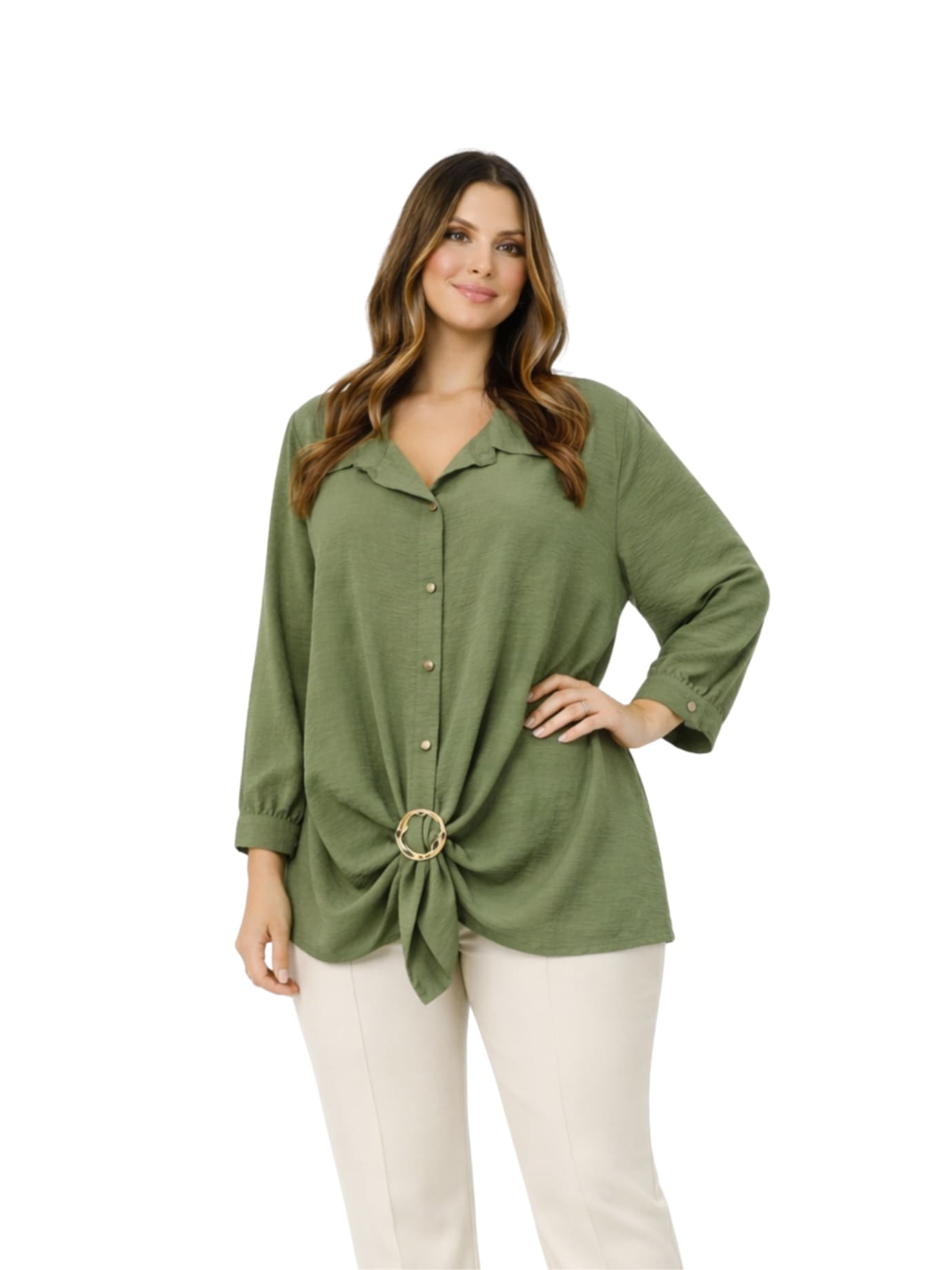 Πουκάμισο χακί σχεδιασμένο για άνεση, κομψότητα και καθημερινή ευκολία. Εφαρμόζει σωστά στο σώμα χωρίς να πιέζει και μπορεί να φορεθεί από το πρωί έως το βράδυ συνδυαστικά με παντελόνια, φούστες ή σετ. Σύνθεση: 100% visc Εφαρμογή: oversized