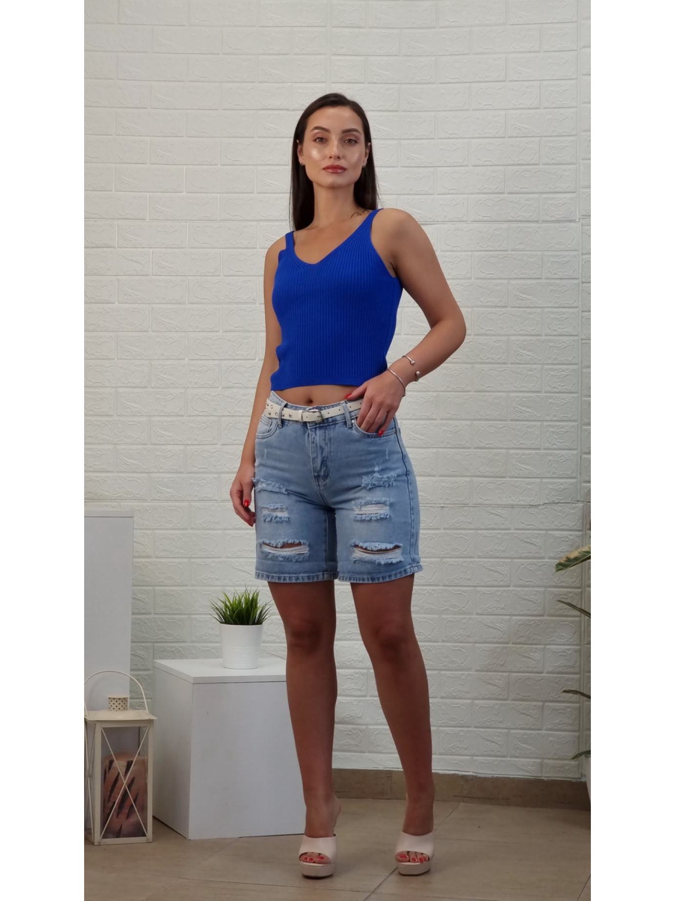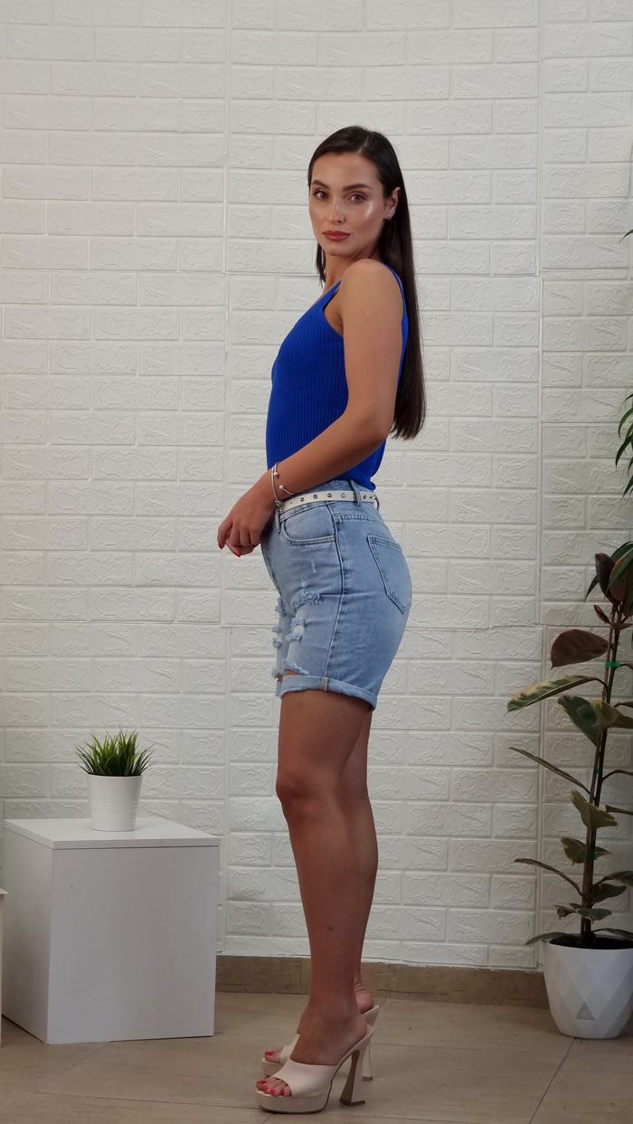 Ψηλόμεση τζίν βερμούδα με σκισίματα-Μπλέ