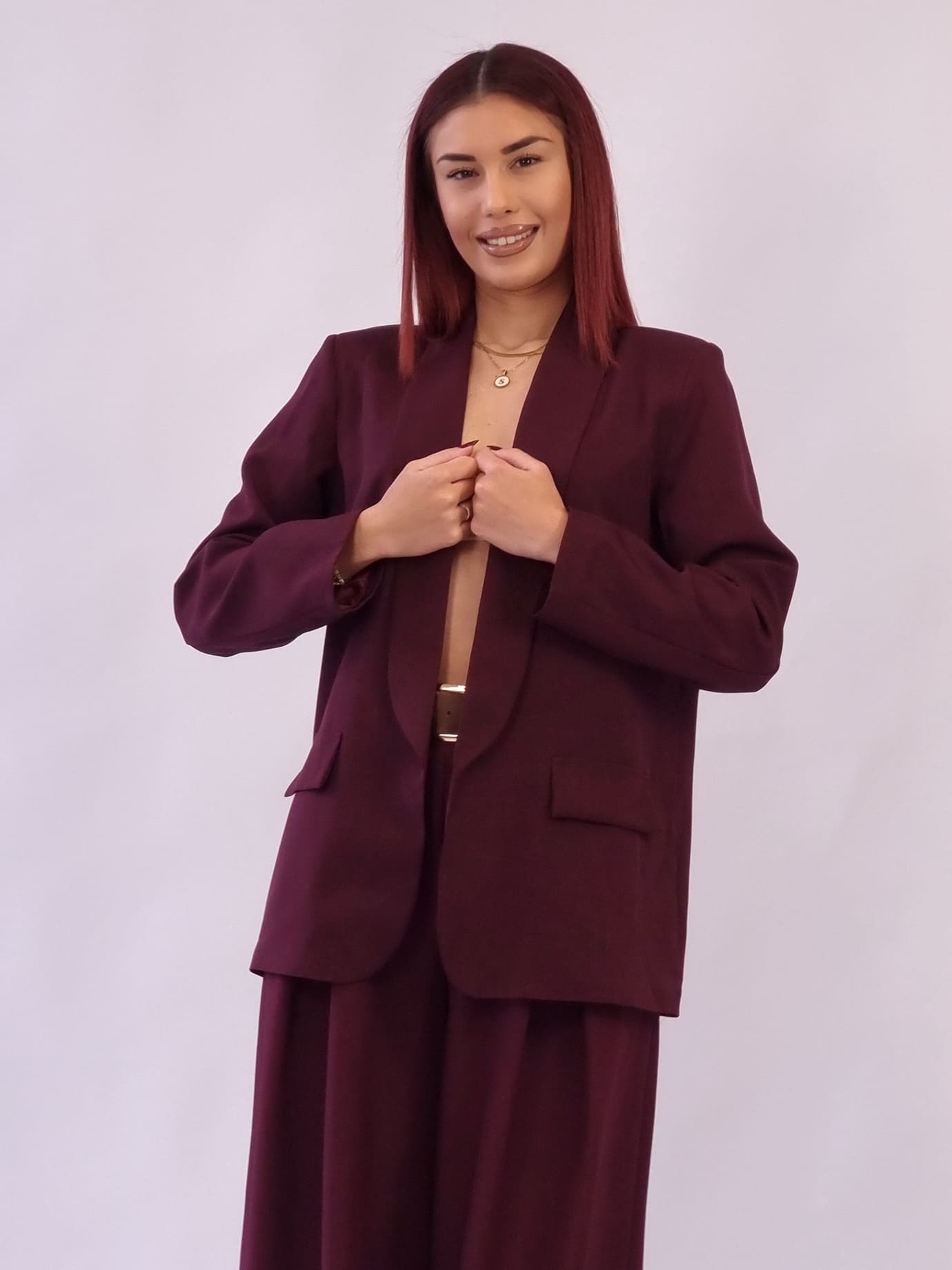 Σακάκι χωρίς Κουμπιά με Βάτες – Βουργουνδί
