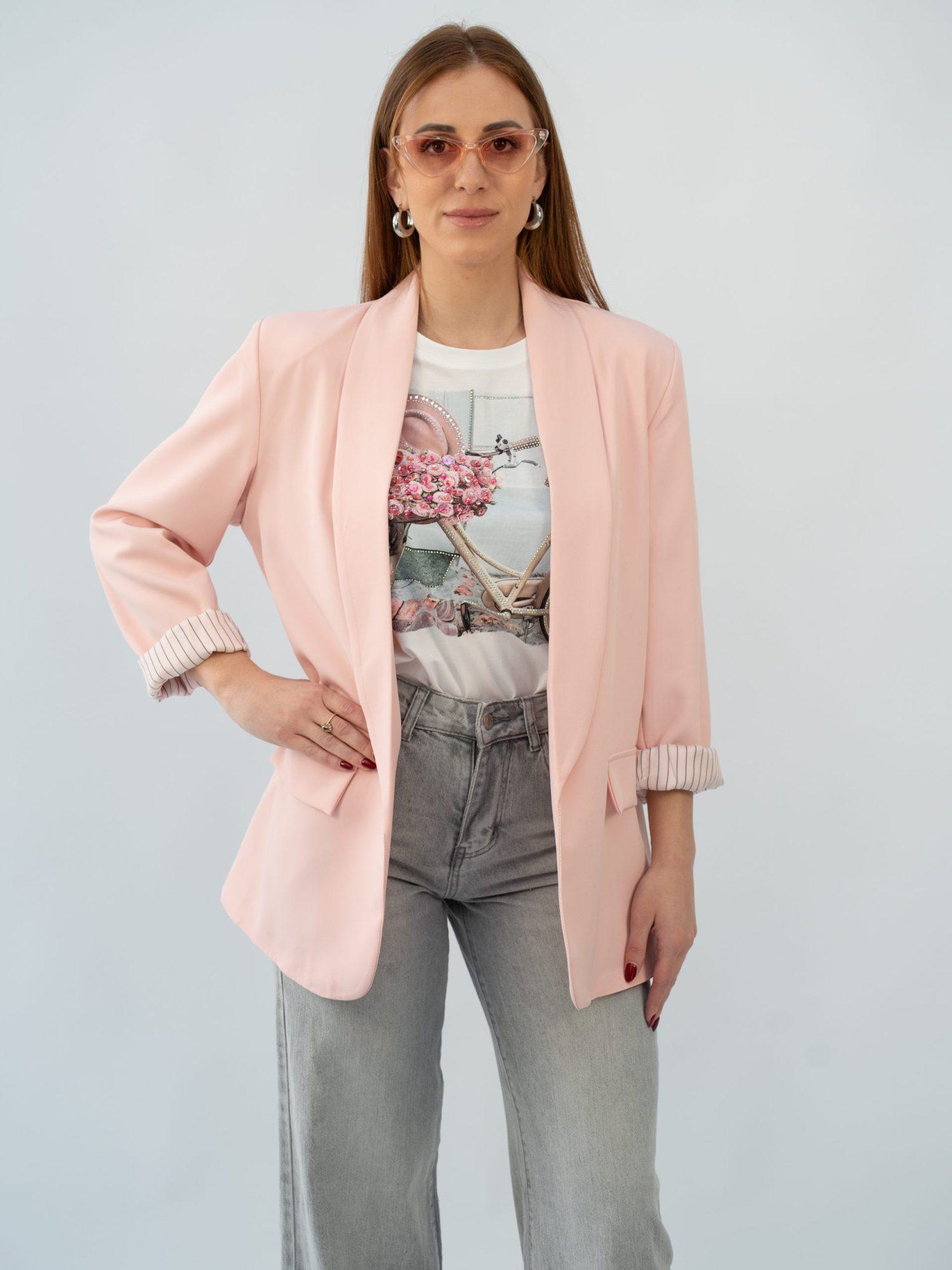 • Σακάκι φόδρα ρίγα-Ρόζ