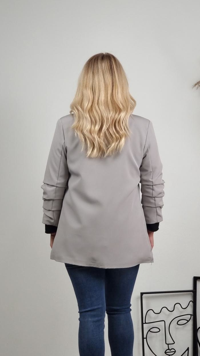 Σακάκι oversized σούρα στα μανίκια -Γκρί
