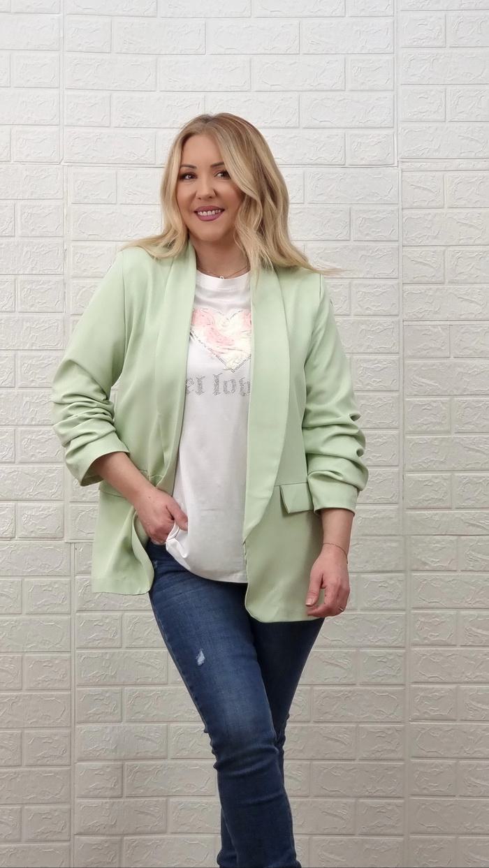 • Μέντα γυναικείο σακάκι με σούρα στα μανίκια