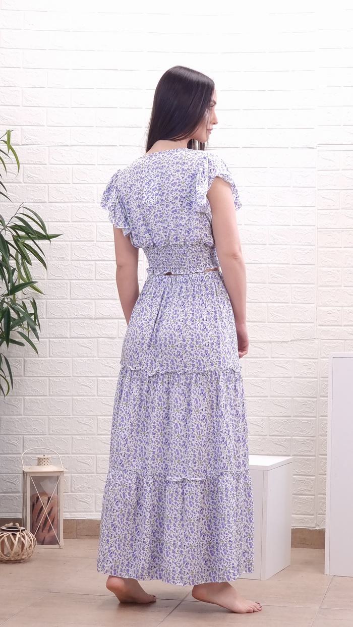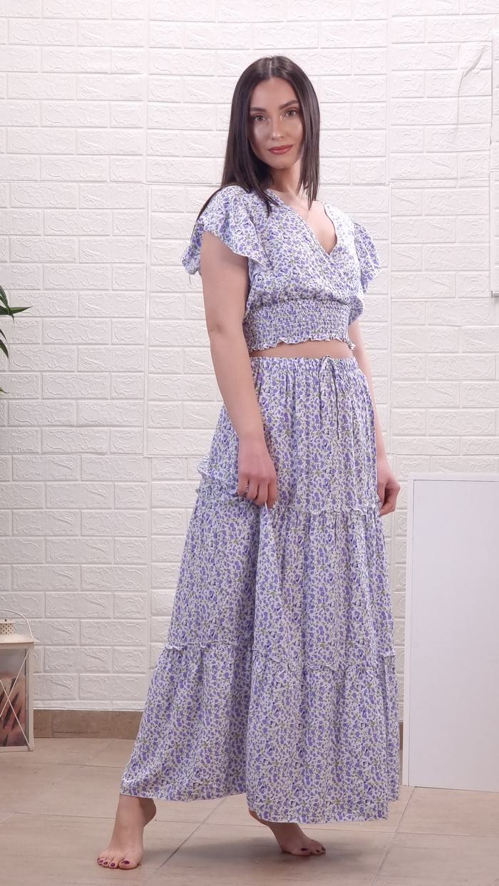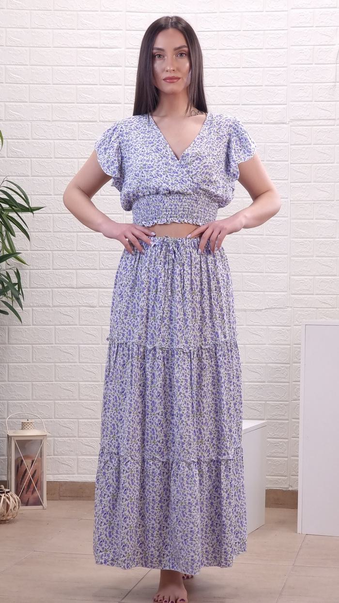 Σετ crop top με φούστα φλοράλ-Λιλά