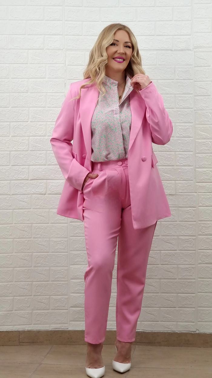 • Ροζ Σετ κοστούμι  αποτελείται από σακάκι και παντελόνι σε άνετη γραμμή