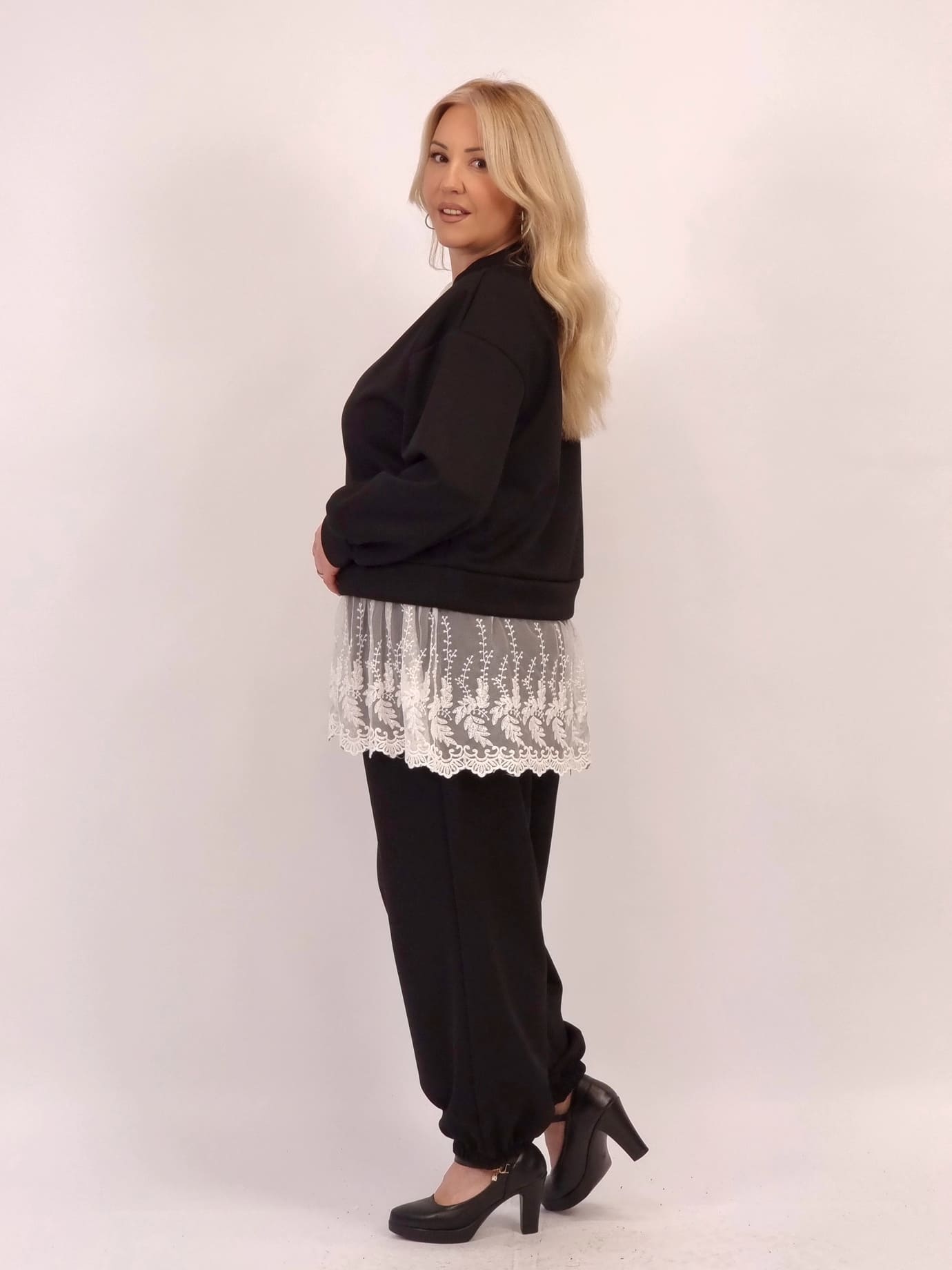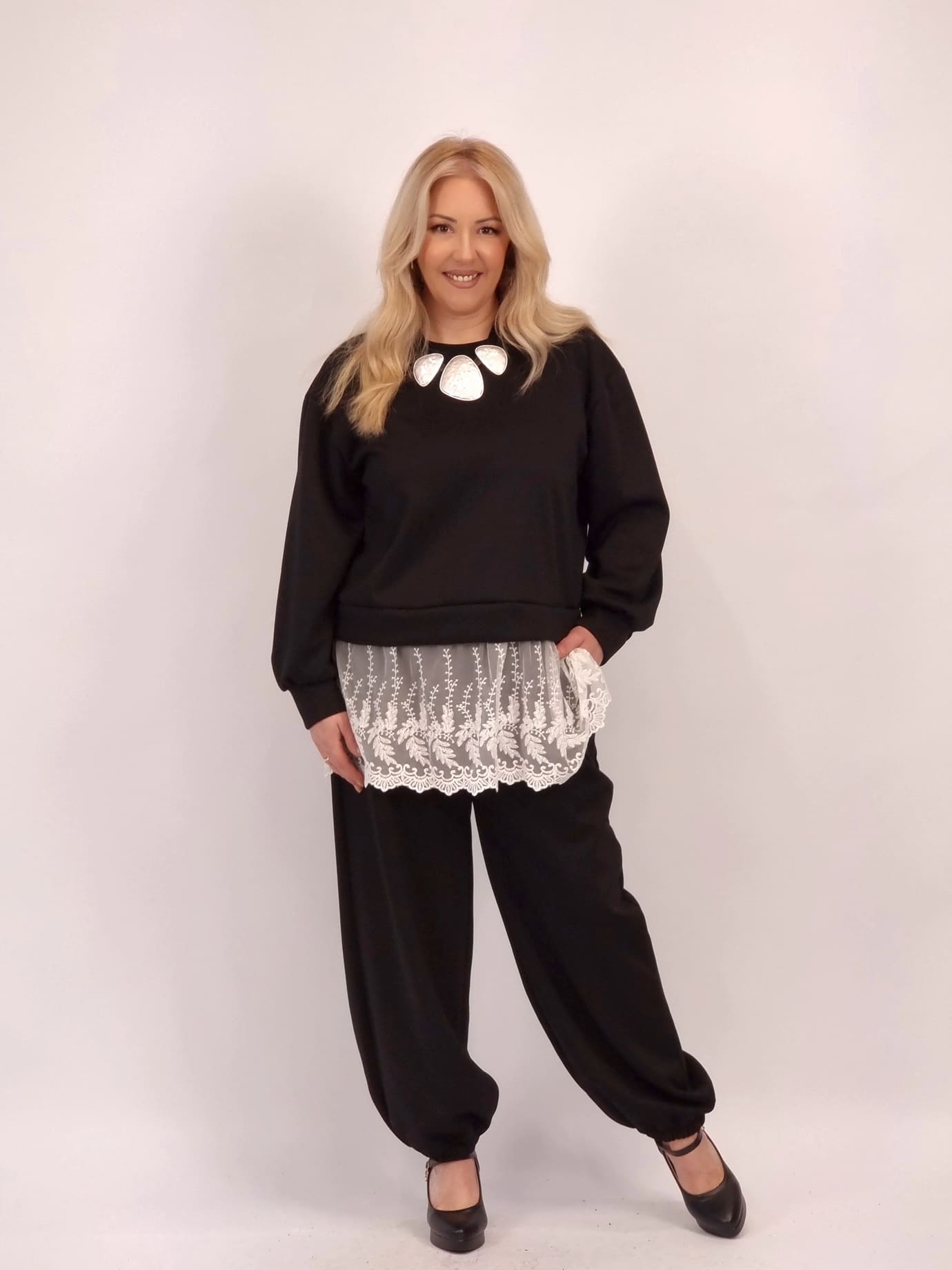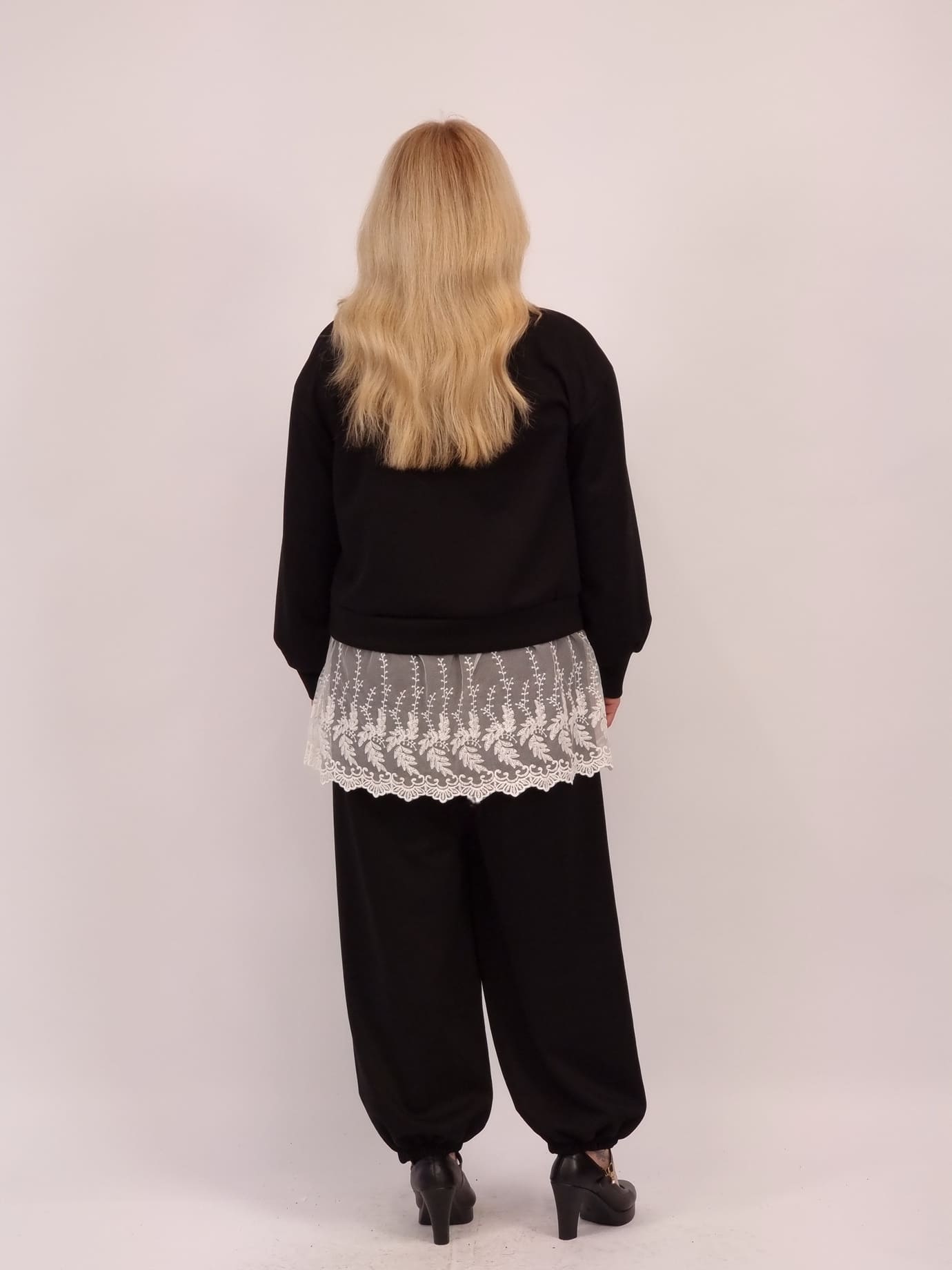 Σετ Μπλούζα Δαντέλα Παντελόνι- Μαύρο