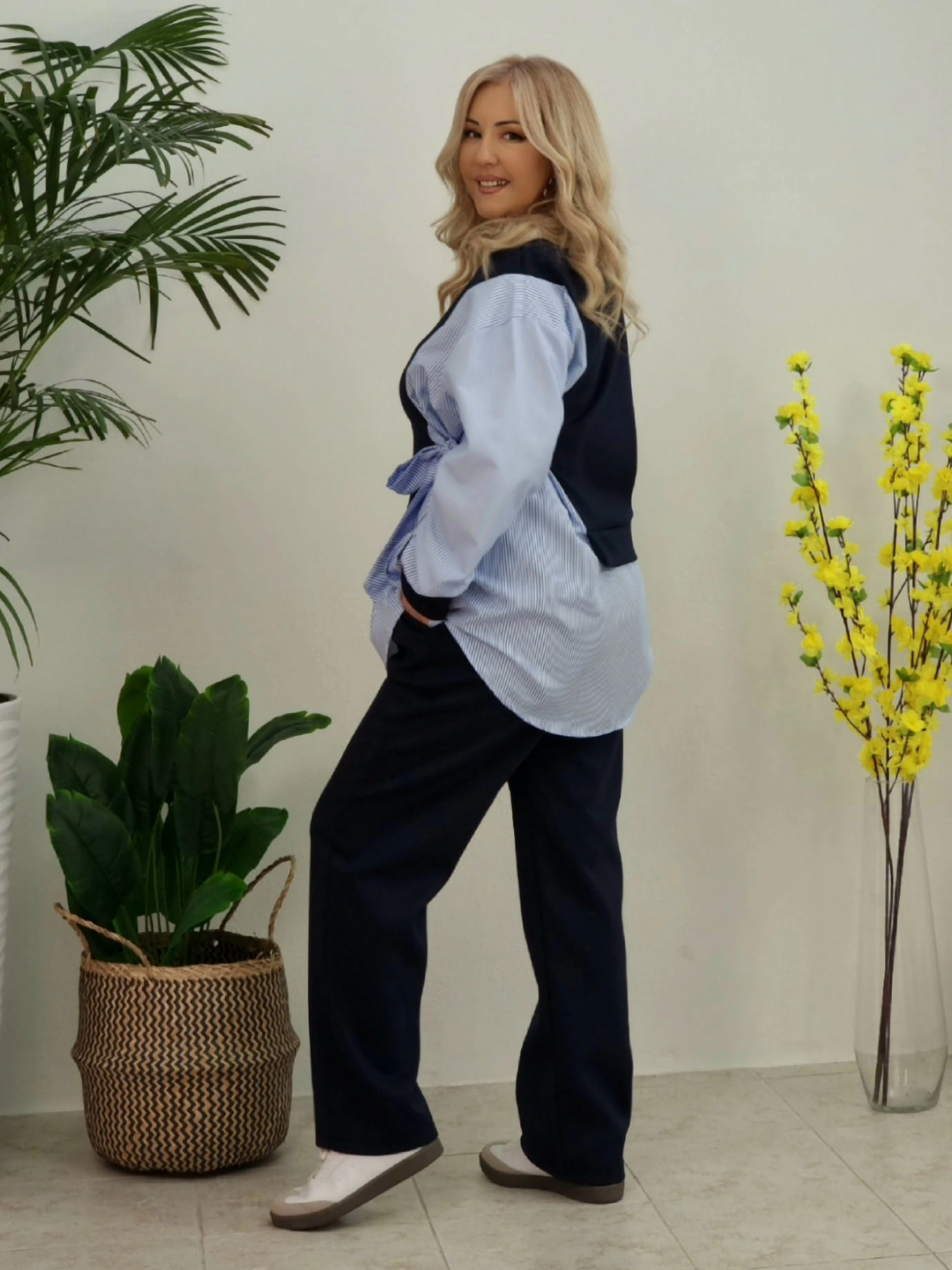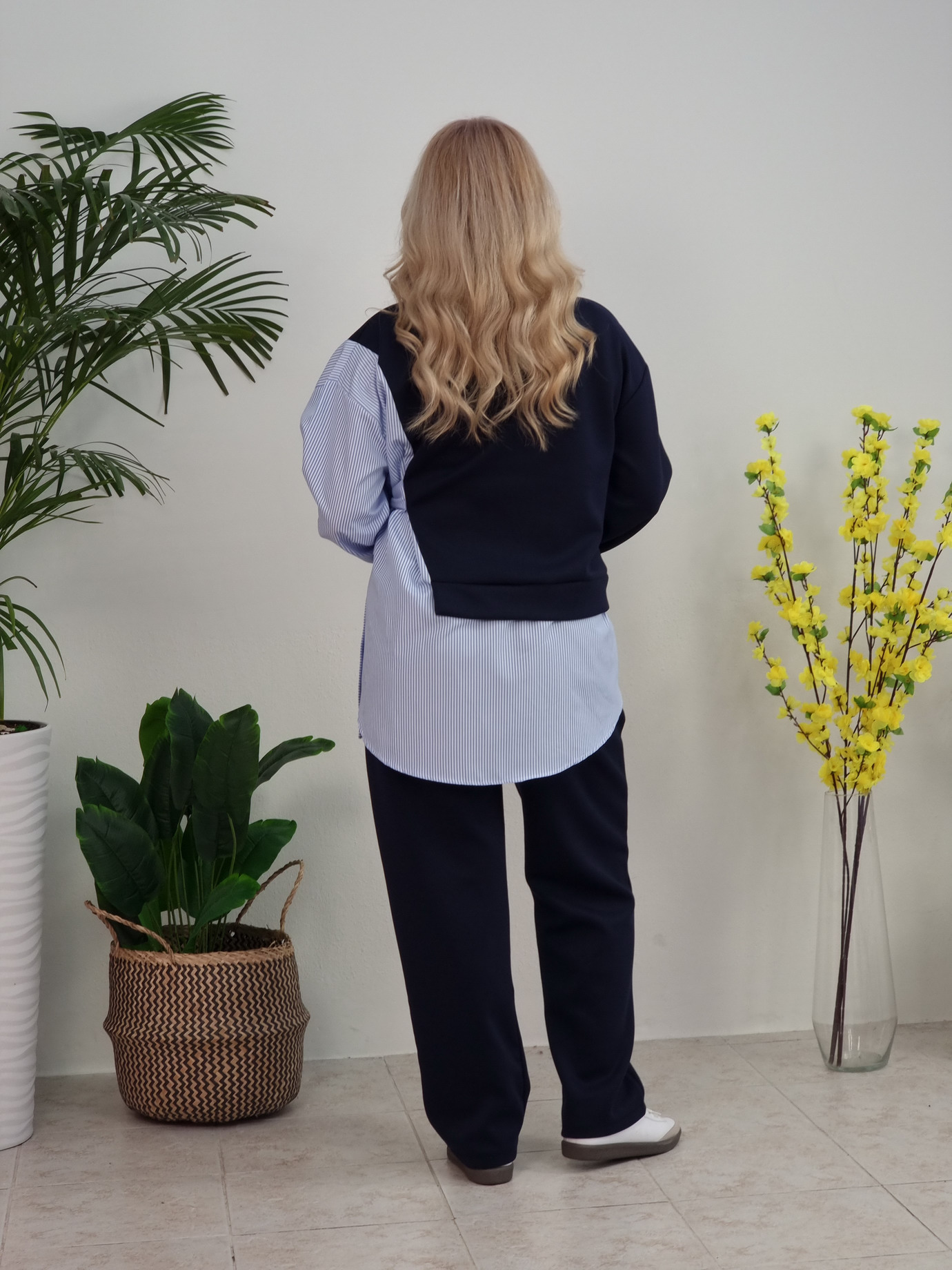 Αυτή το σετ είναι σχεδιασμένο για άνεση, κομψότητα και καθημερινή ευκολία. Εφαρμόζει σωστά στο σώμα χωρίς να πιέζει και μπορεί να φορεθεί από το πρωί έως το βράδυ Ιδανική επιλογή για γυναίκες που θέλουν ρούχα πρακτικά, σύγχρονα και ευέλικτα στο styling.