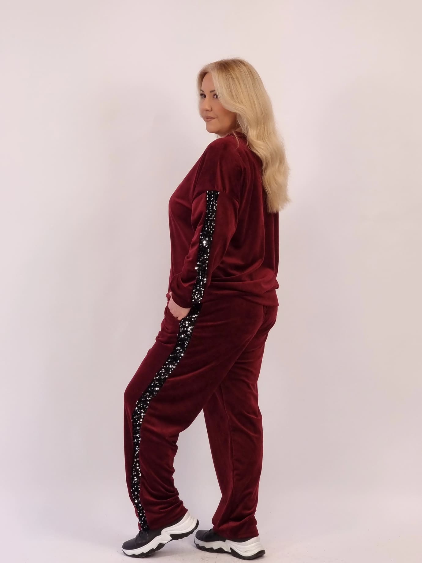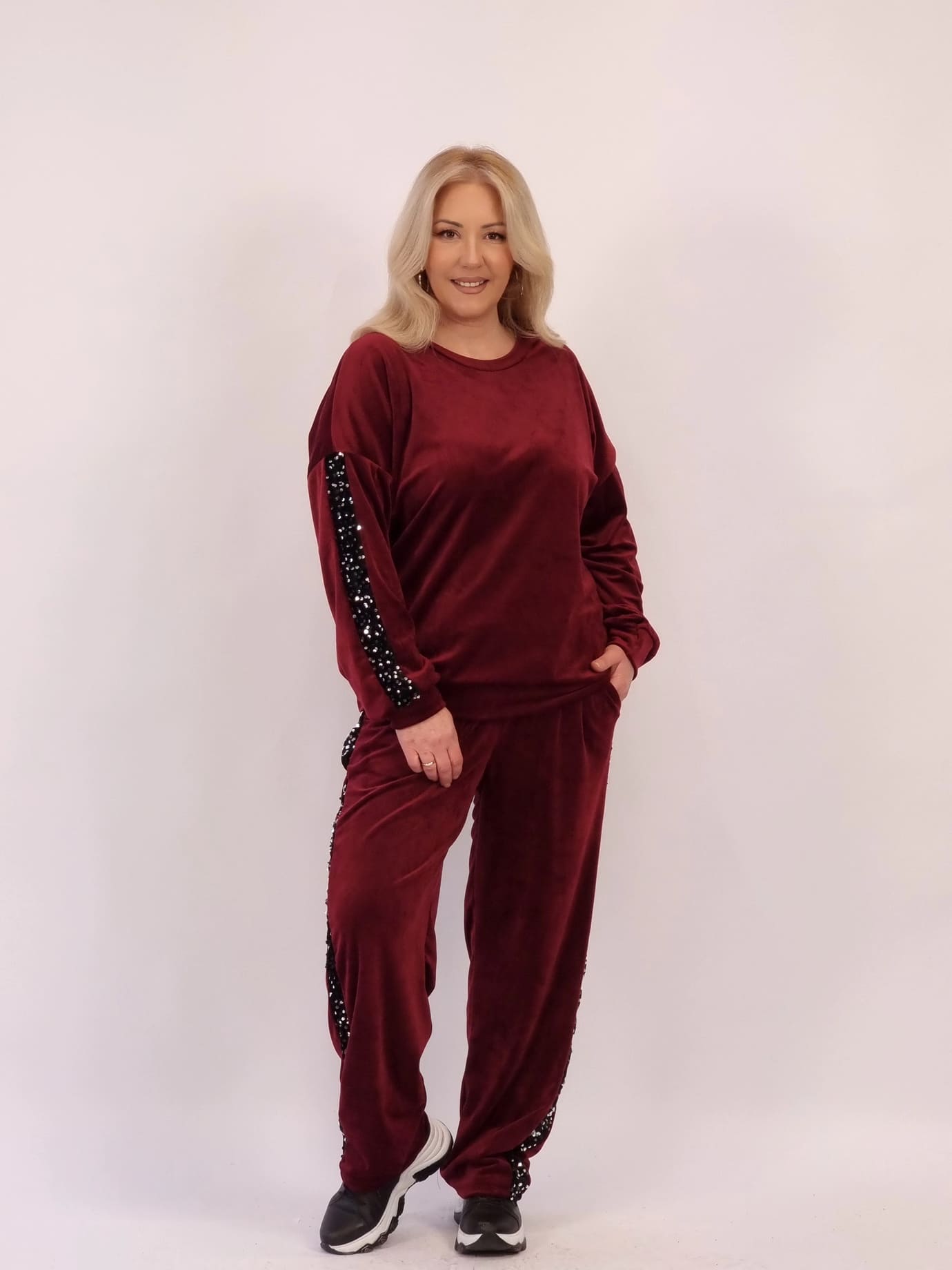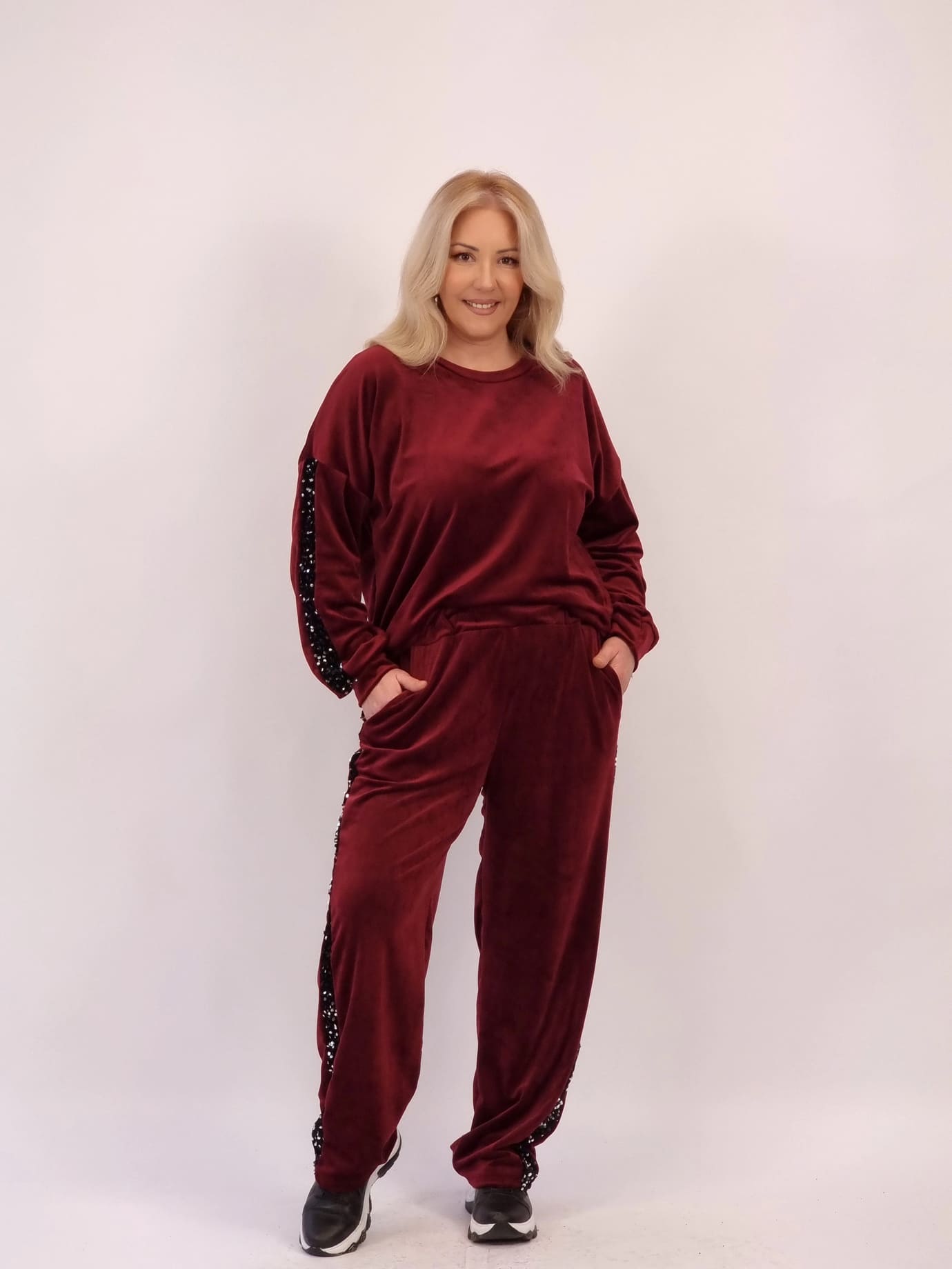 Oversized σετ από μαλακό βελούτε ύφασμα, με εντυπωσιακή παγιέτα στη μπλούζα και στο πλάι του παντελονιού. Προσφέρει άνεση, στυλ και κίνηση χωρίς περιορισμούς.