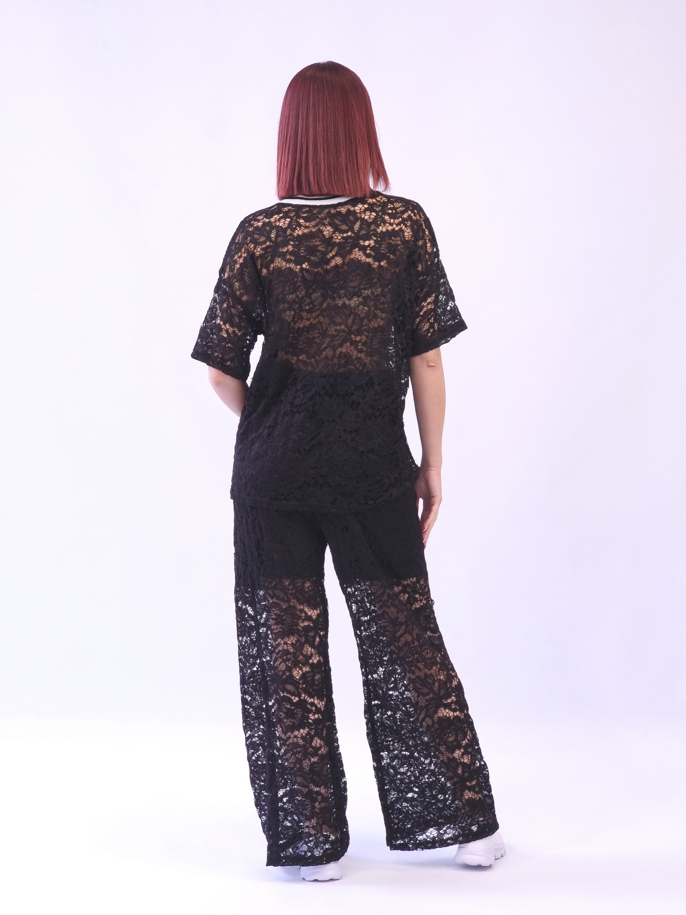 Σετ μπλούζα παντελόνι δαντέλα -Μαύρο