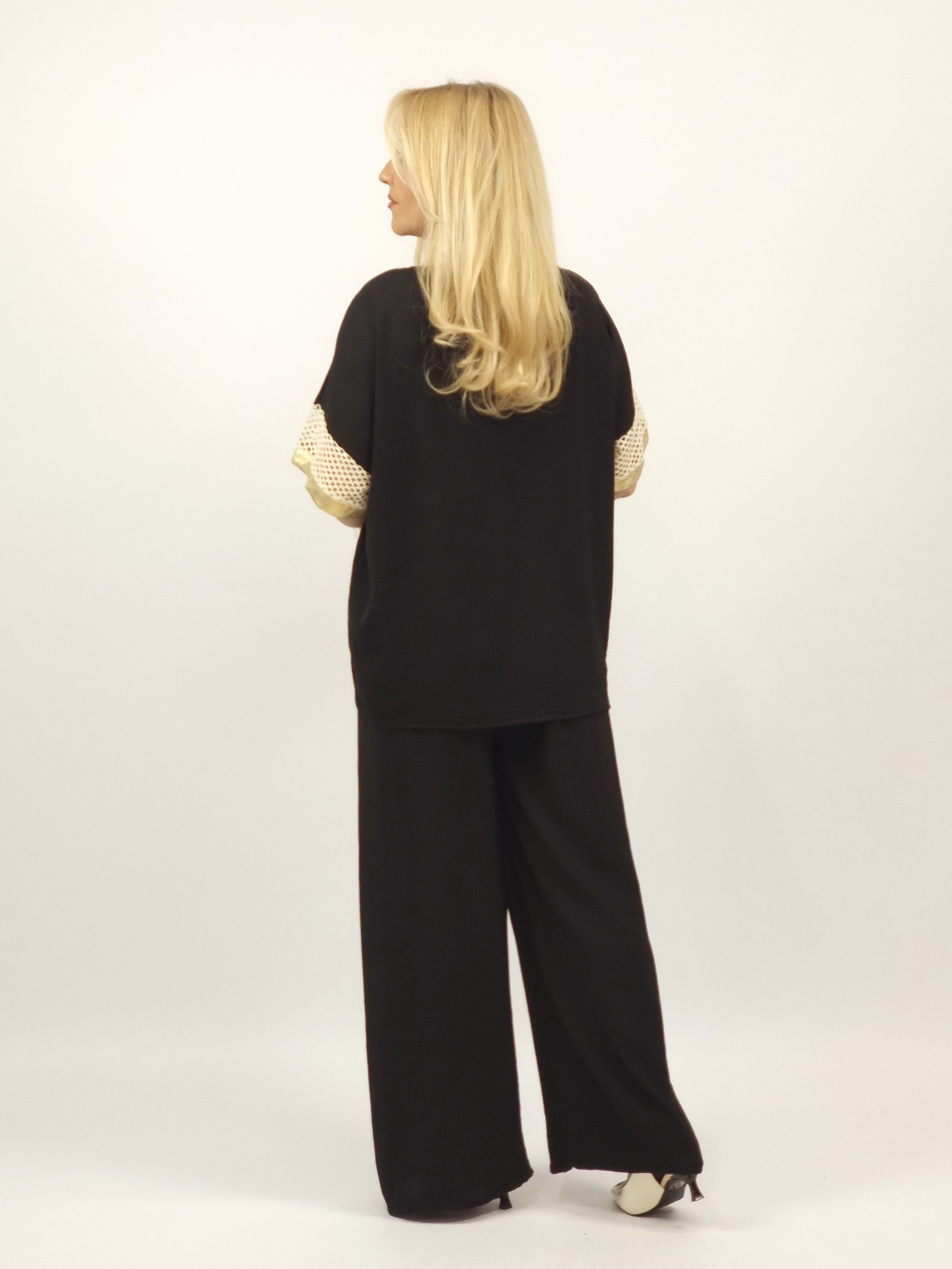 Σετ μπλούζα παντελόνι λεπτομέρεια λούρεξ δαντέλα- Μαύρο