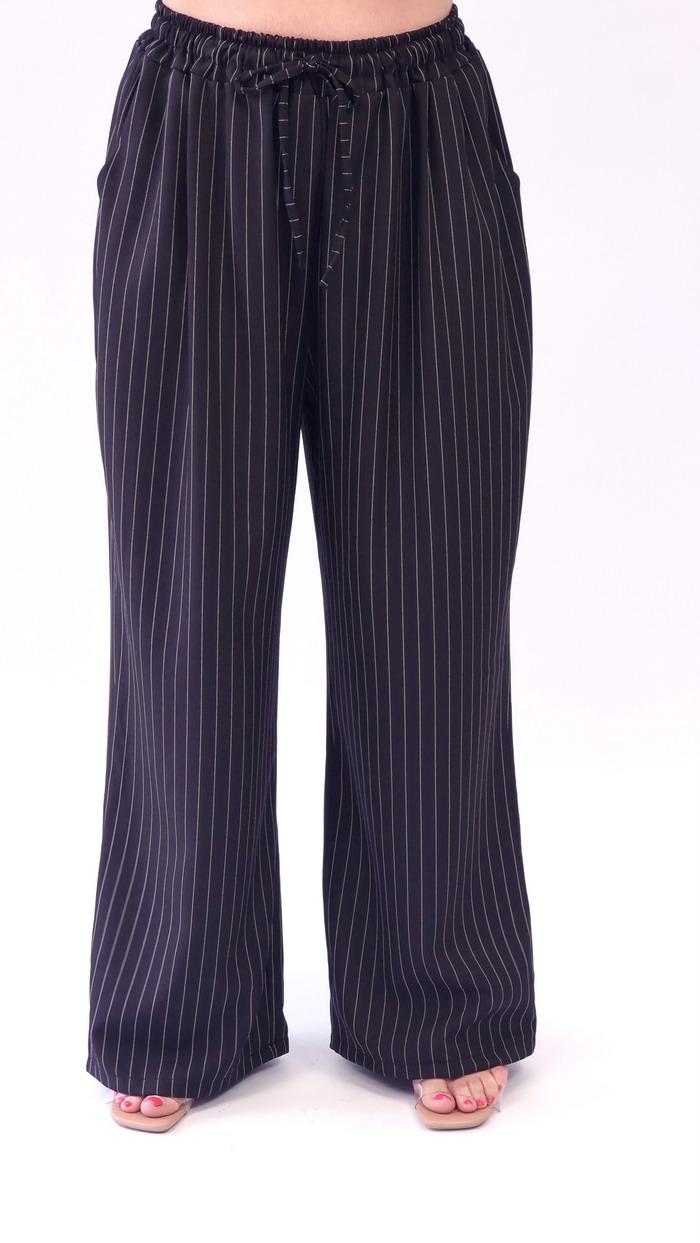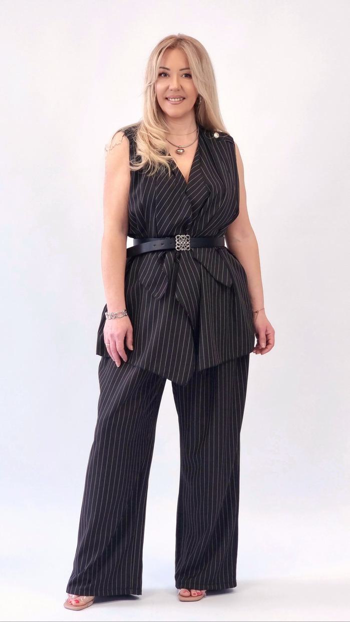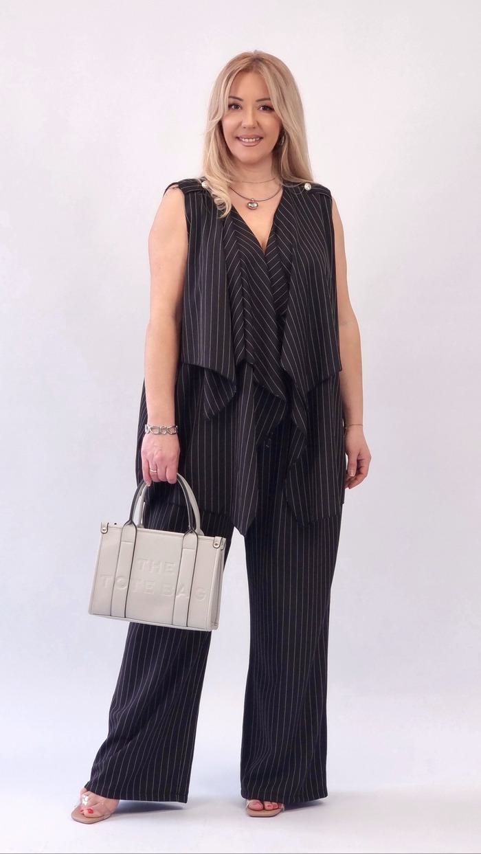 Σετ oversized γιλέκο παντελόνι ρίγα-Μαύρο