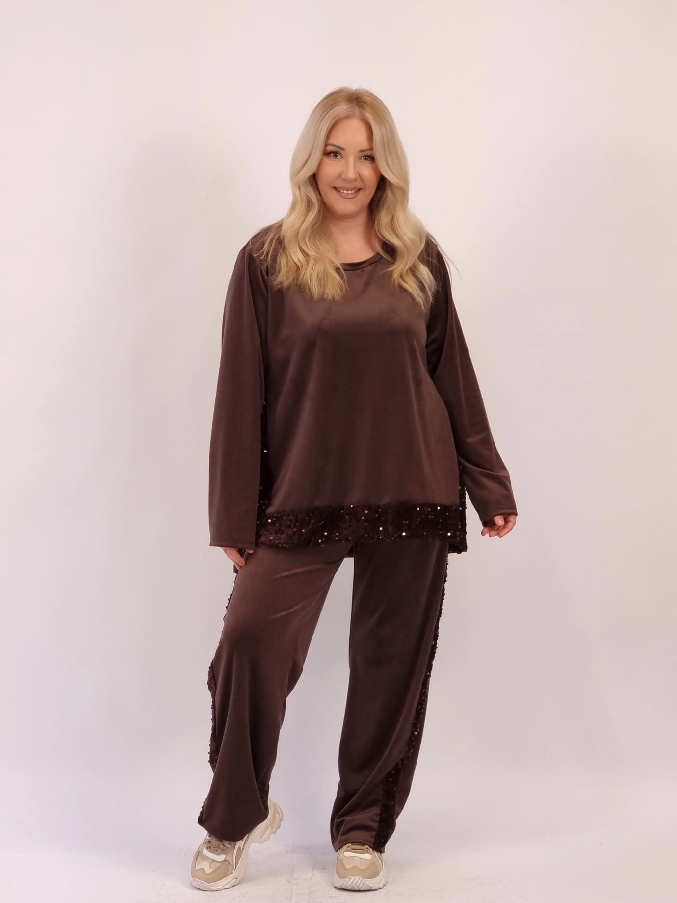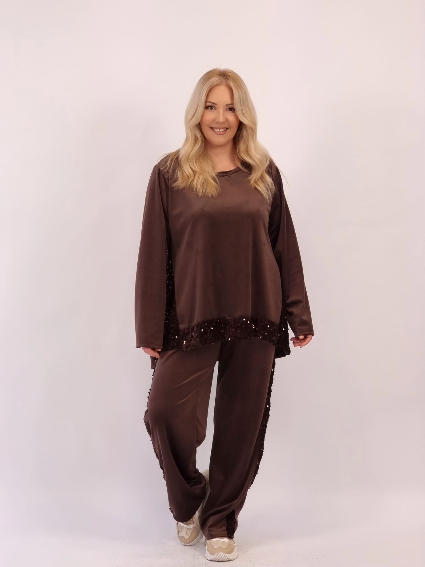Σετ Παγιέτα Oversize Velvet-Σοκολά