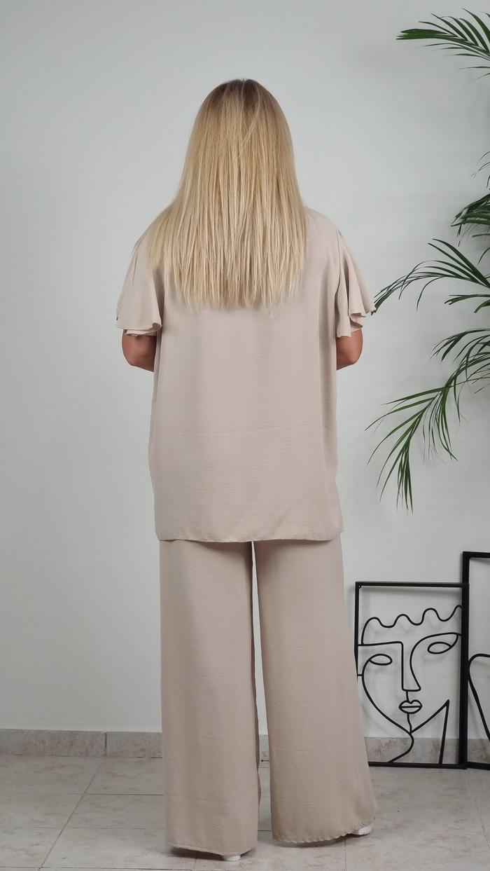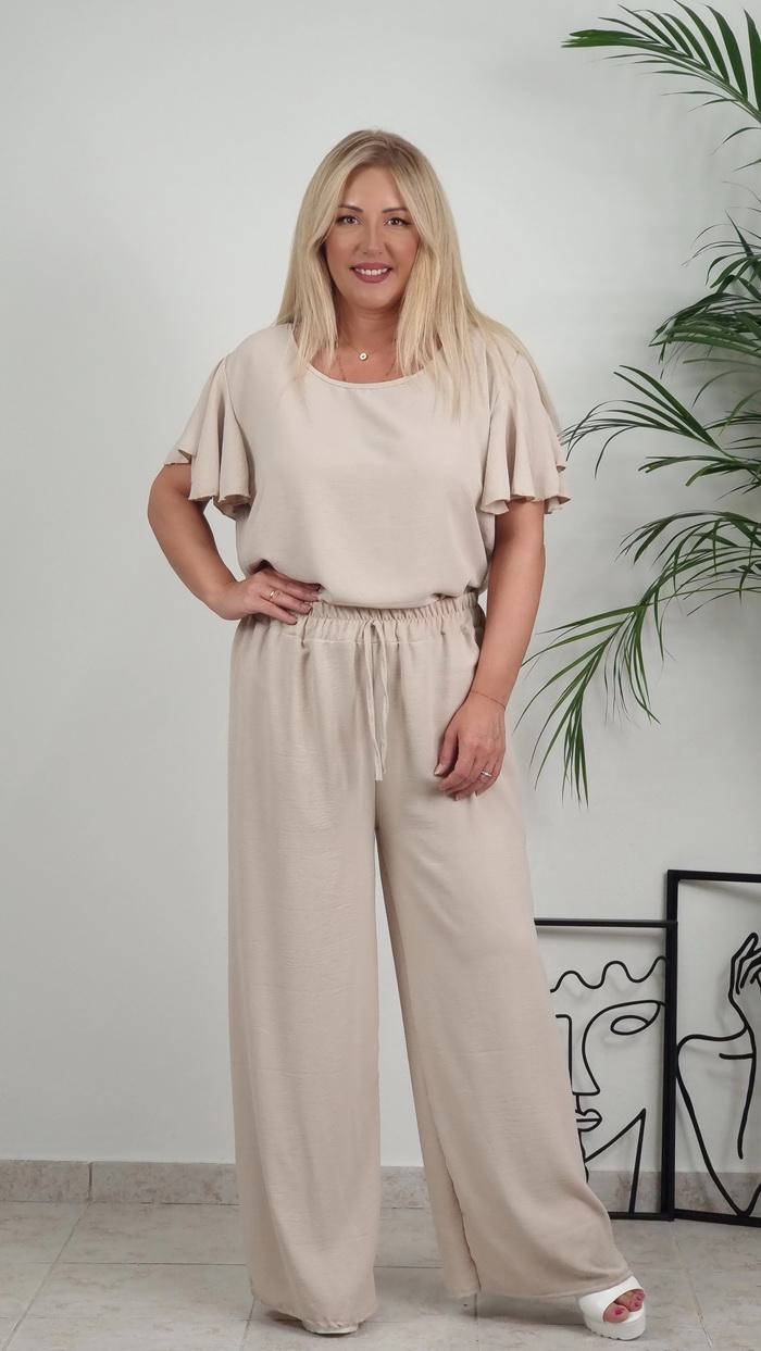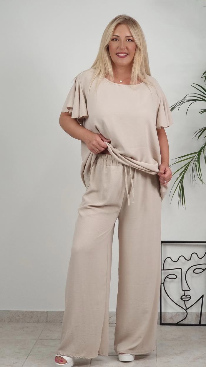• Σετ παντελόνα μπλούζα βολάν μανίκι-Εκρού