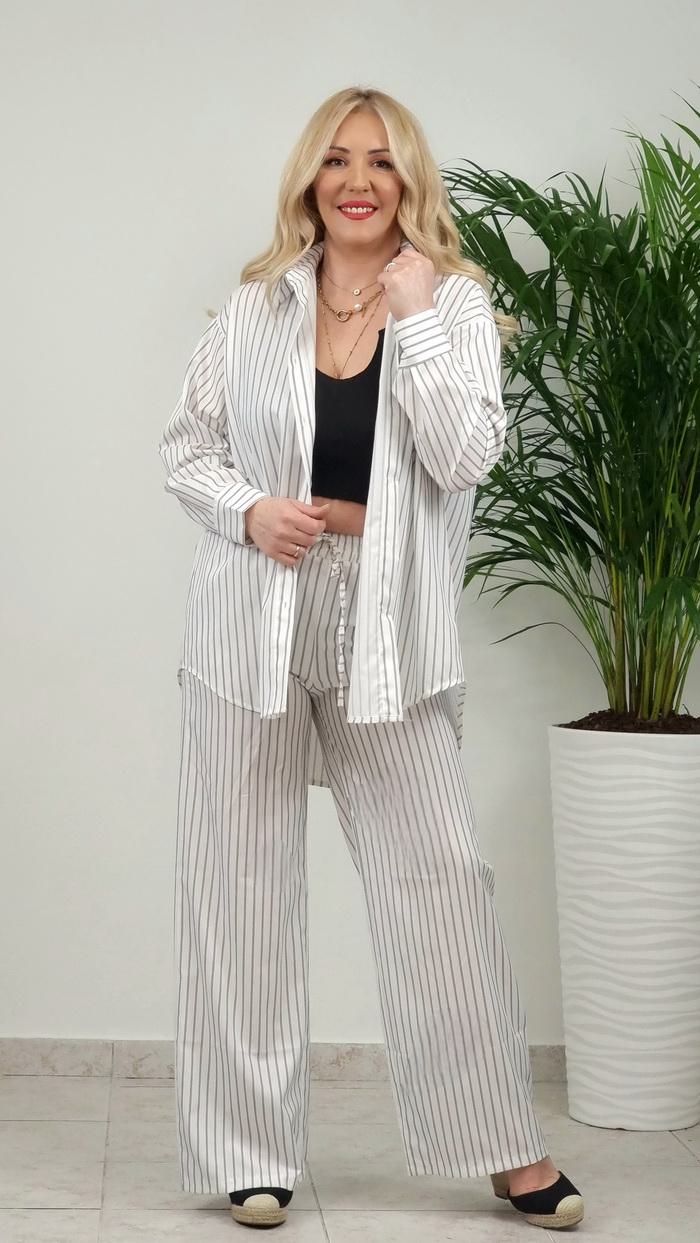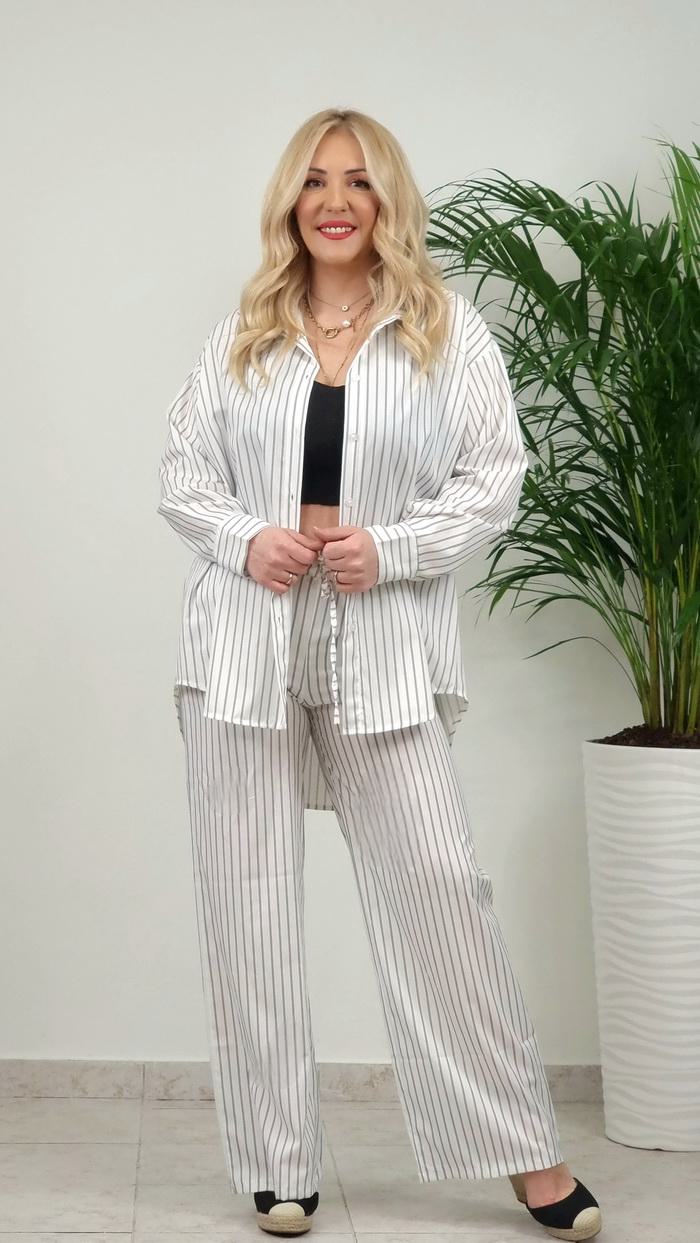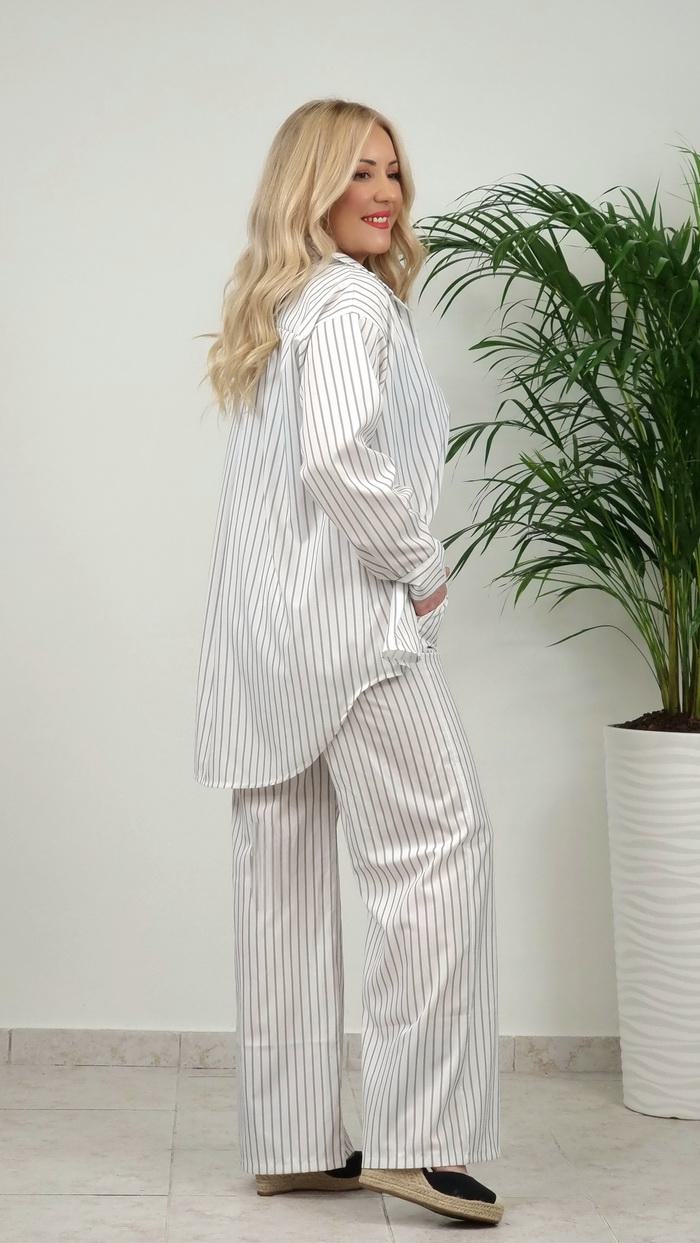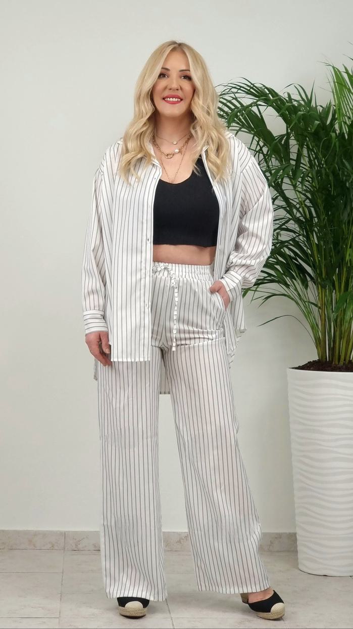 • Σετ Παντελόνι με Πουκαμίσα ριγέ -Λευκό