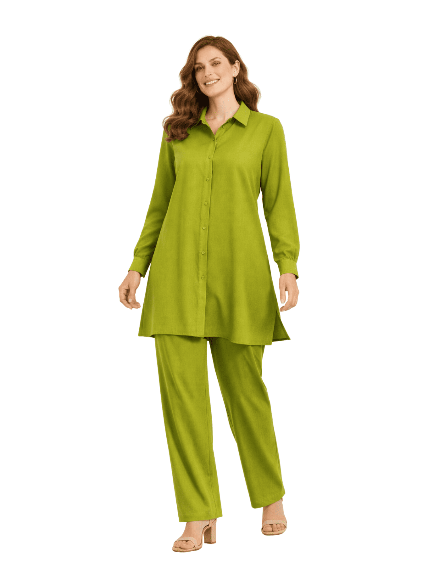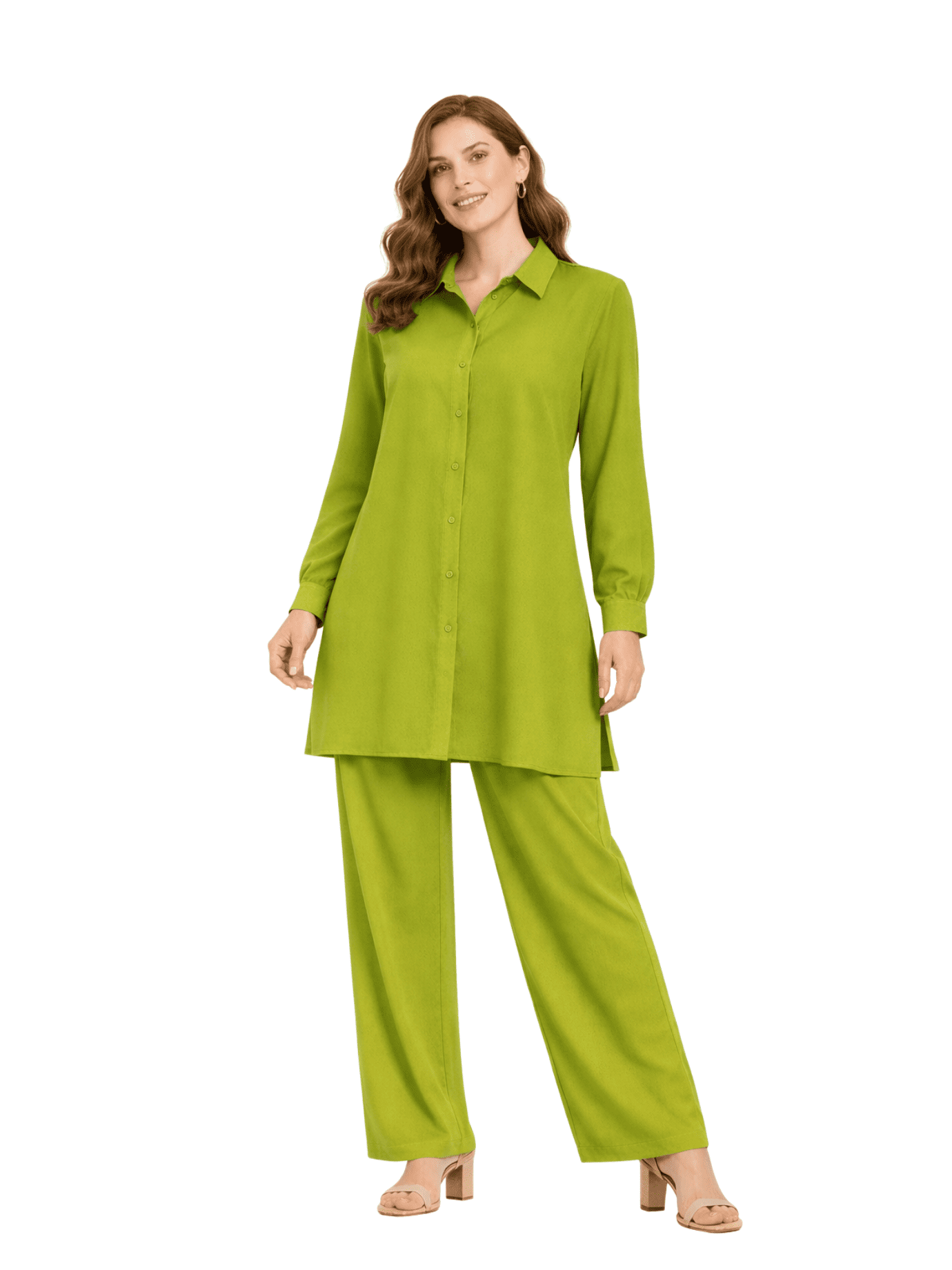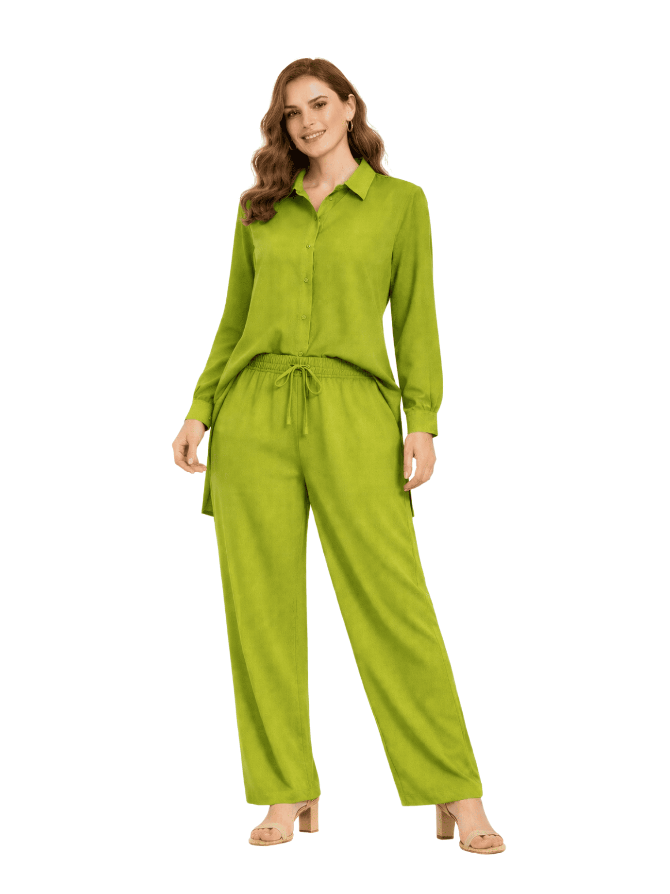 Έτοιμο σετ Πουκαμίσα Μακριά Παντελόνα lime που φοριέται μαζί ή ξεχωριστά για περισσότερους συνδυασμούς. Έτοιμο look για να μη σκέφτεσαι τι να συνδυάσεις. Φόρεσέ το loose για χαλαρή κομψότητα ή πρόσθεσε ζώνη για πιο δομημένο Αν διστάζεις για τα μεγέθη, μπορείς να επικοινωνήσεις μαζί μας ✔ Δωρεάν αλλαγή • Άμεση αποστολή σε 24 ώρες
