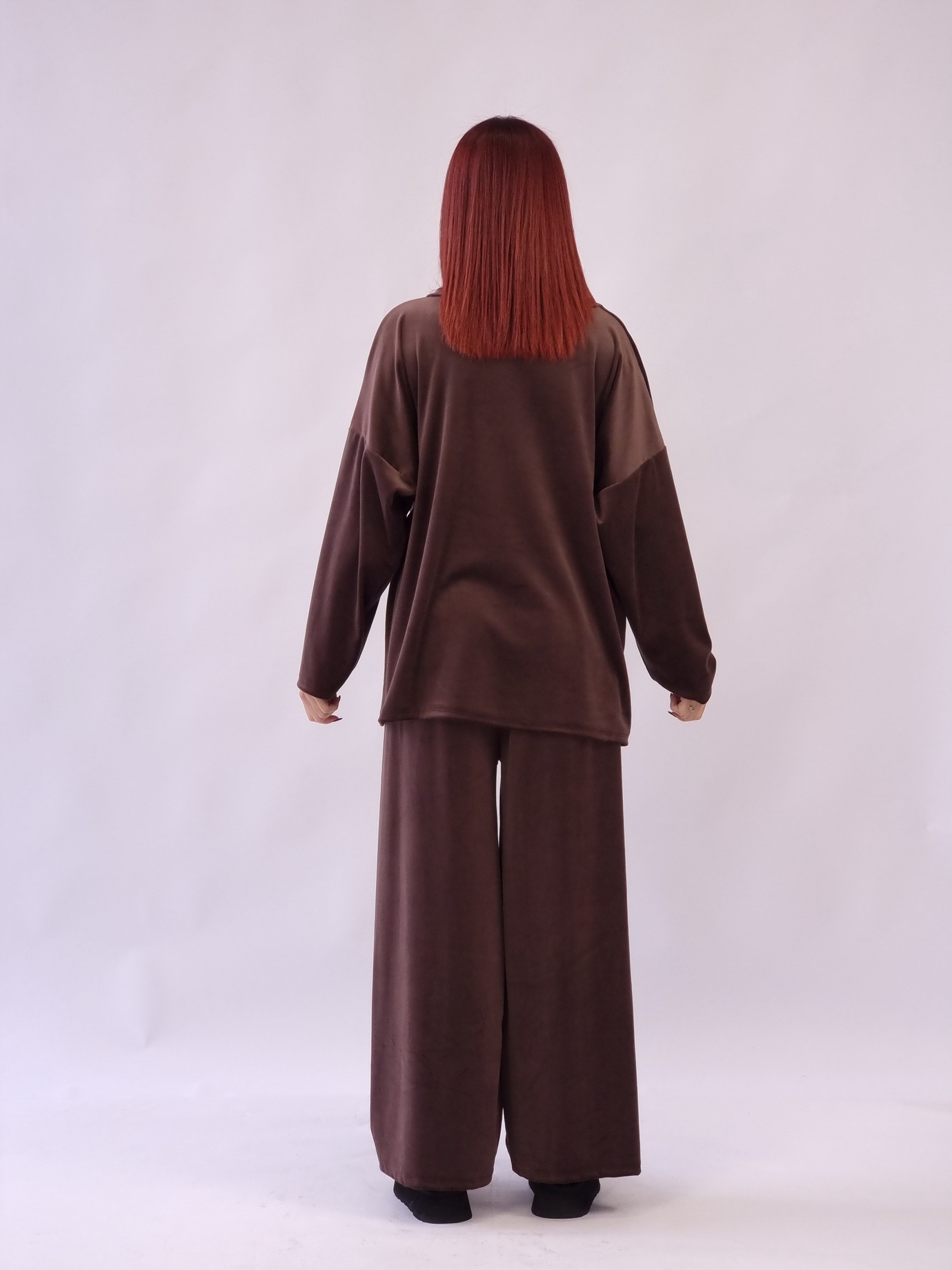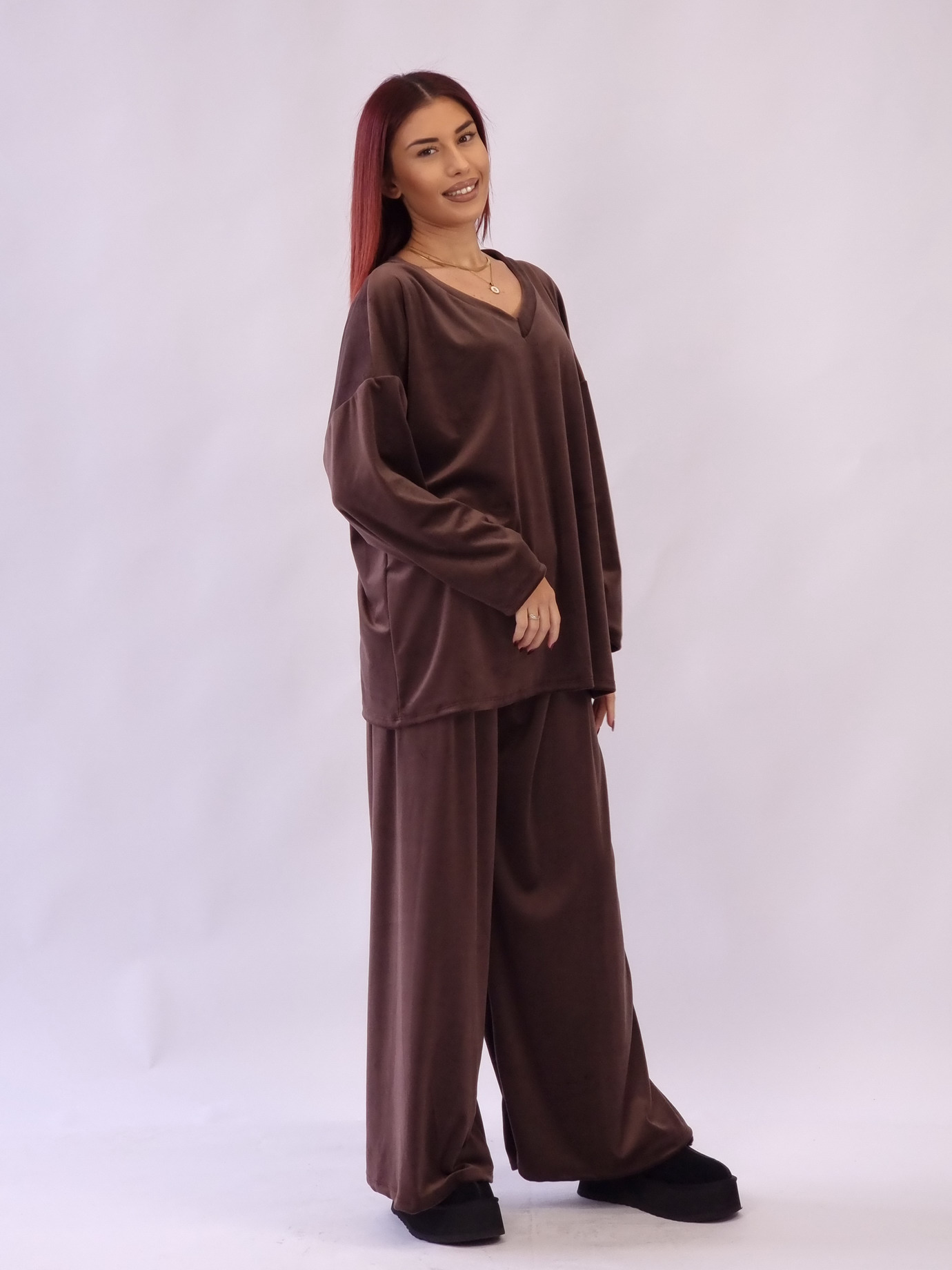 Άνετο velvet σετ με κομψή V λαιμόκοψη και φαρδιά γραμμή.