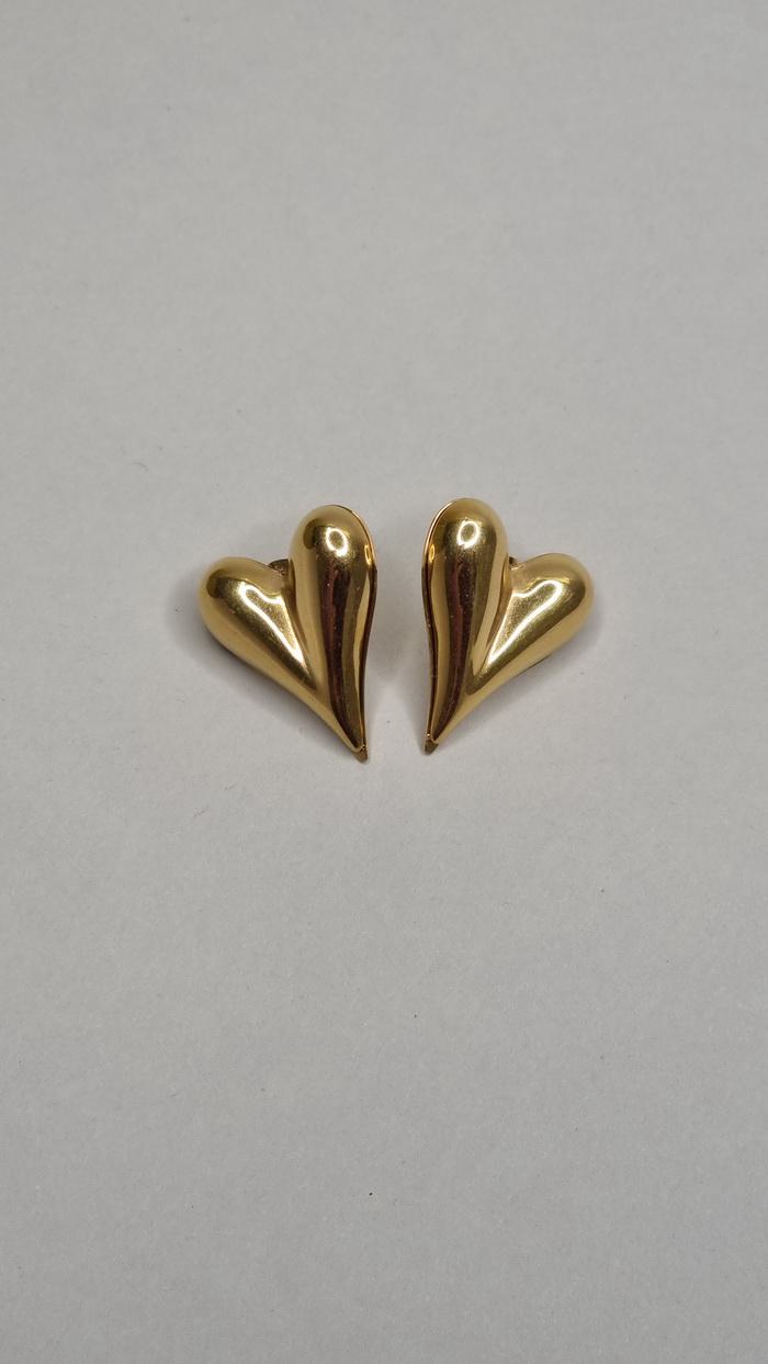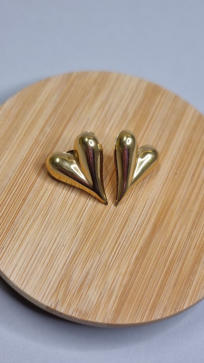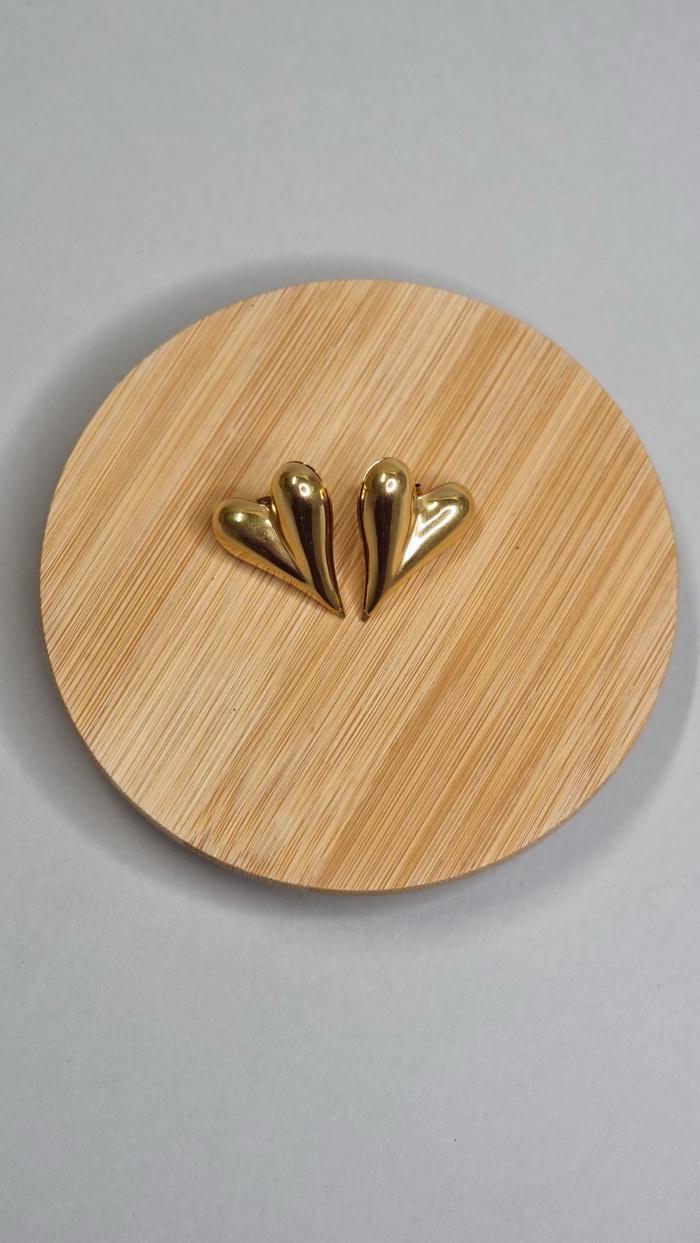 • Σκουλαρίκια ατσάλινα σε χρυσή απόχρωση με σχέδιο καρδιές.