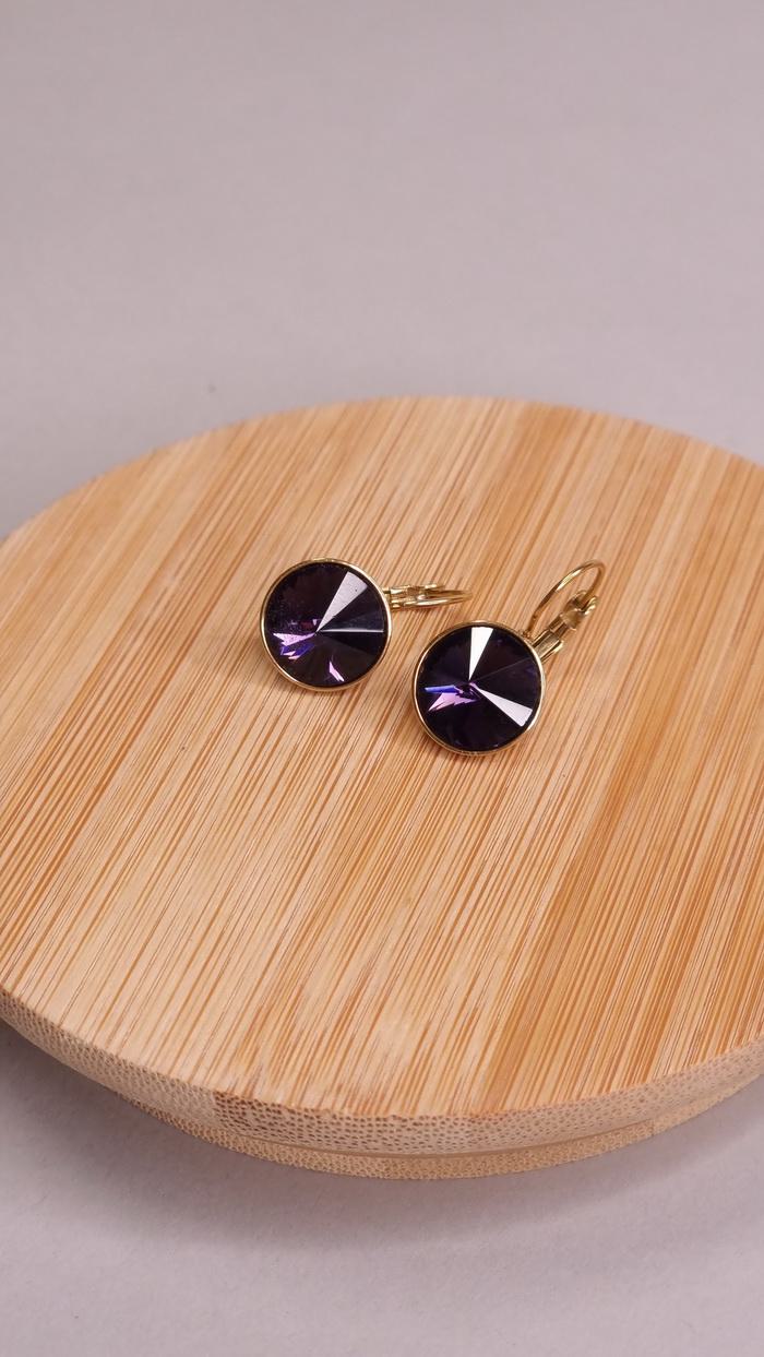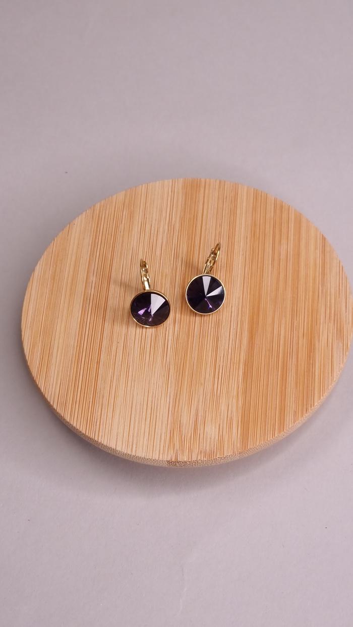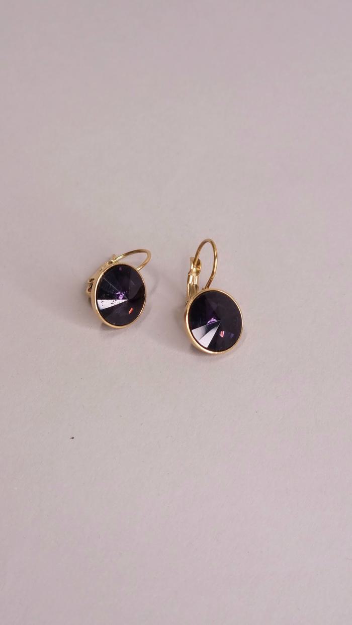 • Σκουλαρίκια κρεμαστά με πέτρα μωβ σκούρο.