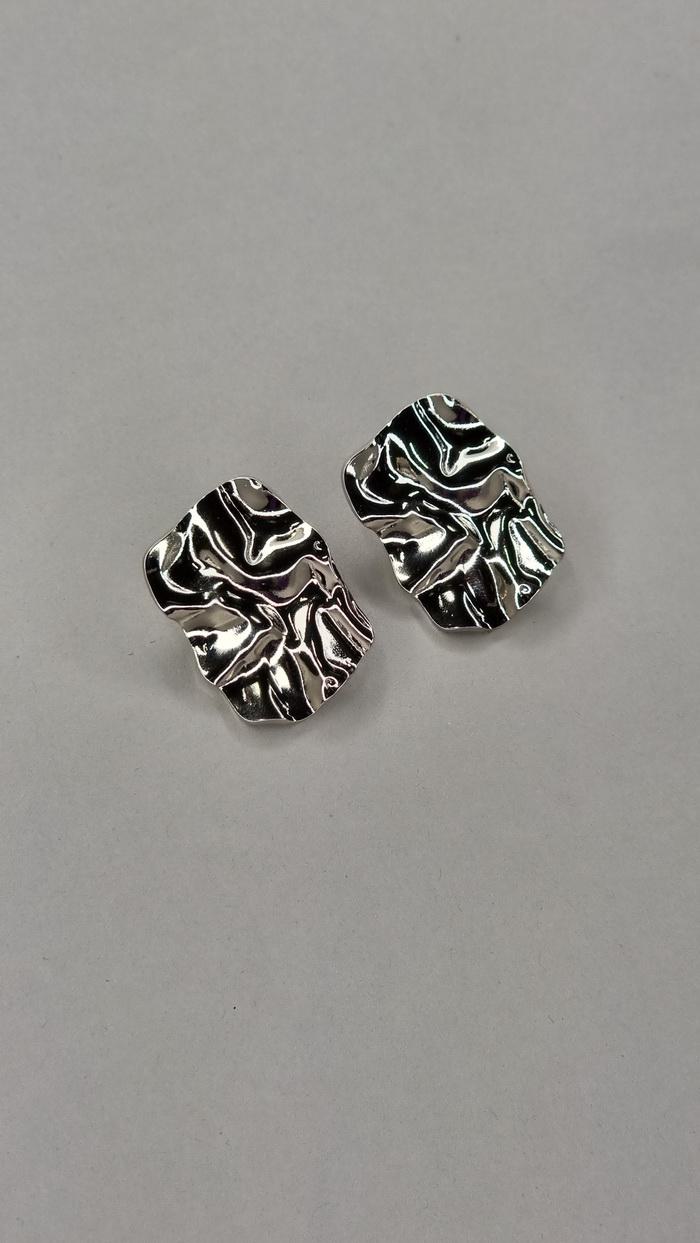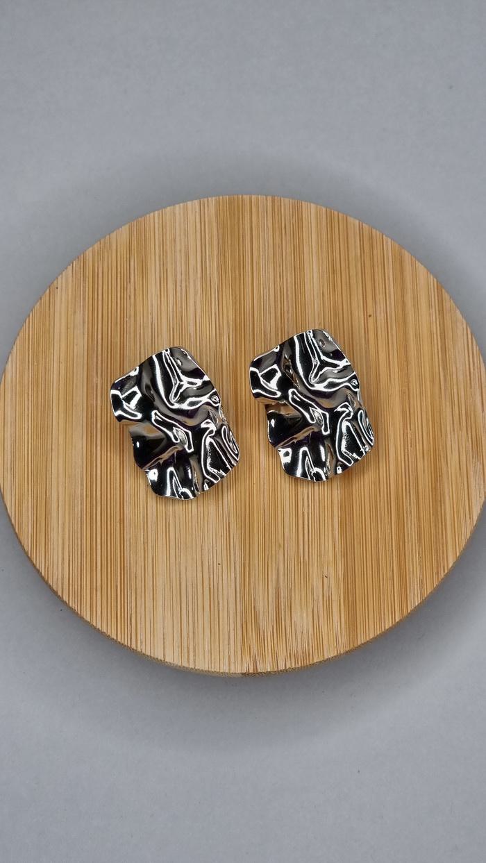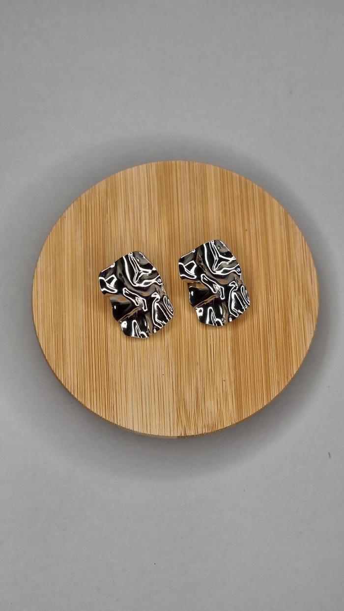 • Σκουλαρίκια αστάλινα σχήμα ορθογώνιο, σφυρήλατα σε ασημί απόχρωση.