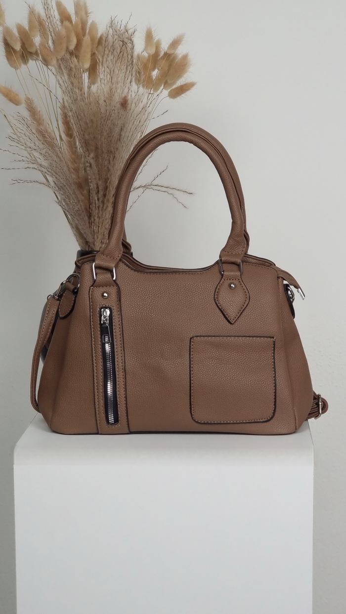 • Τσάντα χειρός ταμπά με λεπτομέρειες σε ασημί