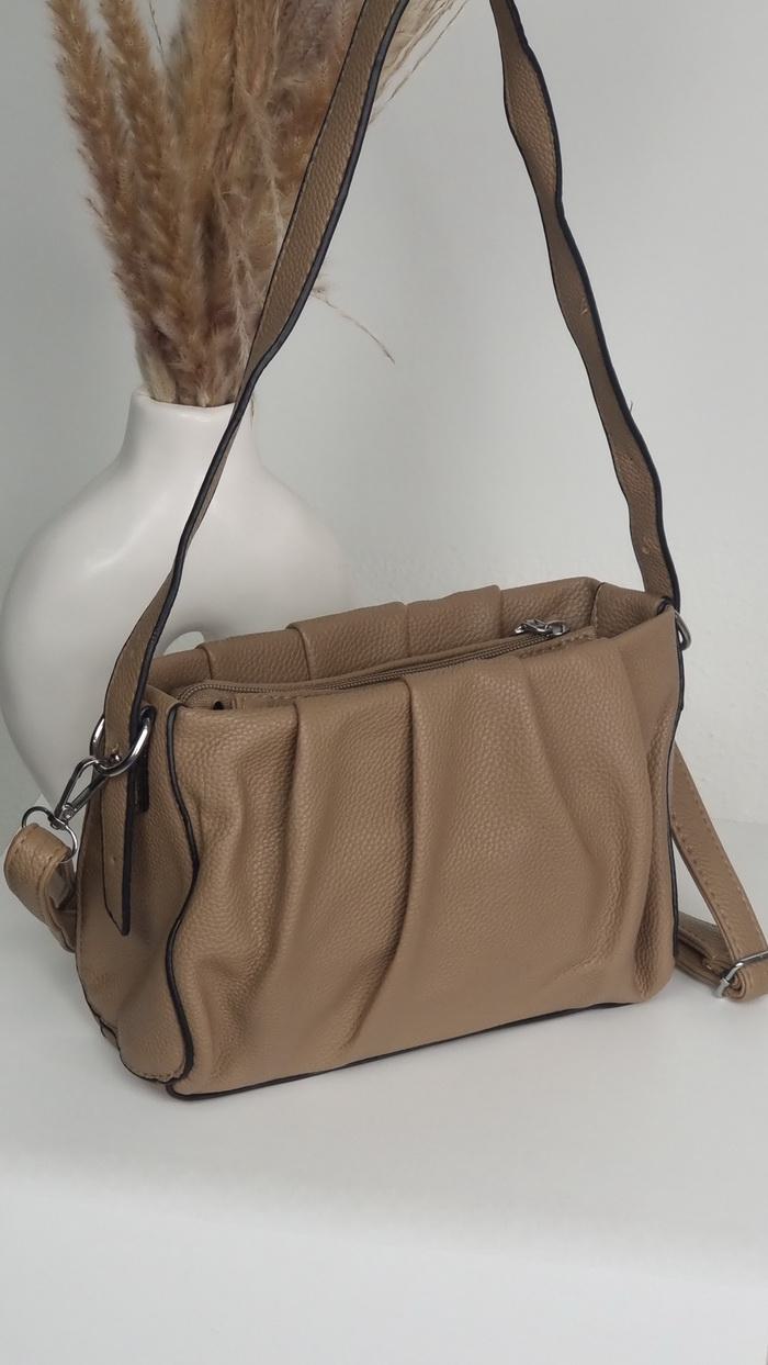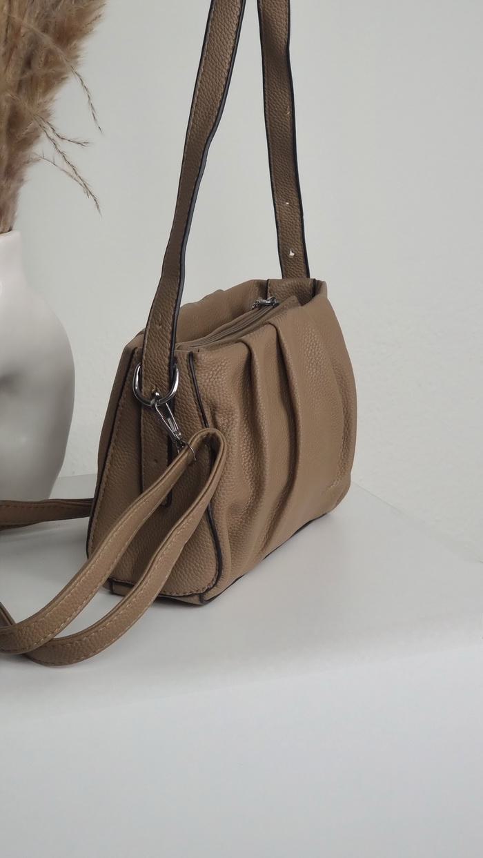 • Τσάντα ώμου και χιαστί με σούρες μπέζ