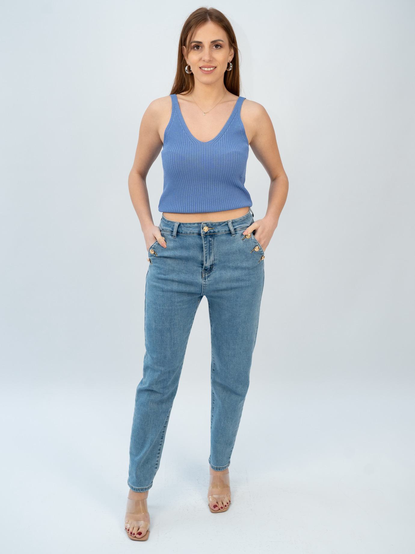 • Μπλέ τζιν παντελόνι ψηλόμεσο ελαστικό
