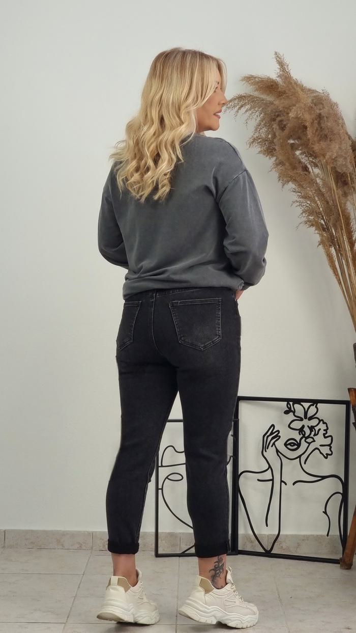 Τζιν ψηλόμεσο παντελόνι με κουμπιά στρας- Μαύρο