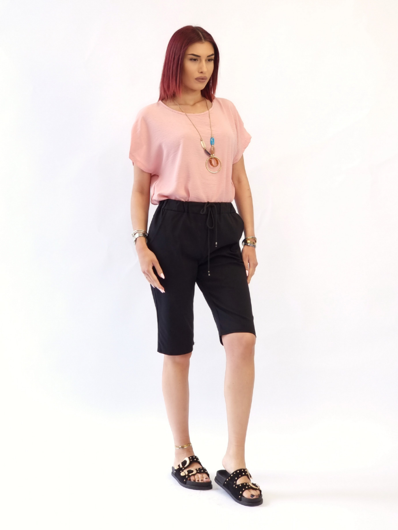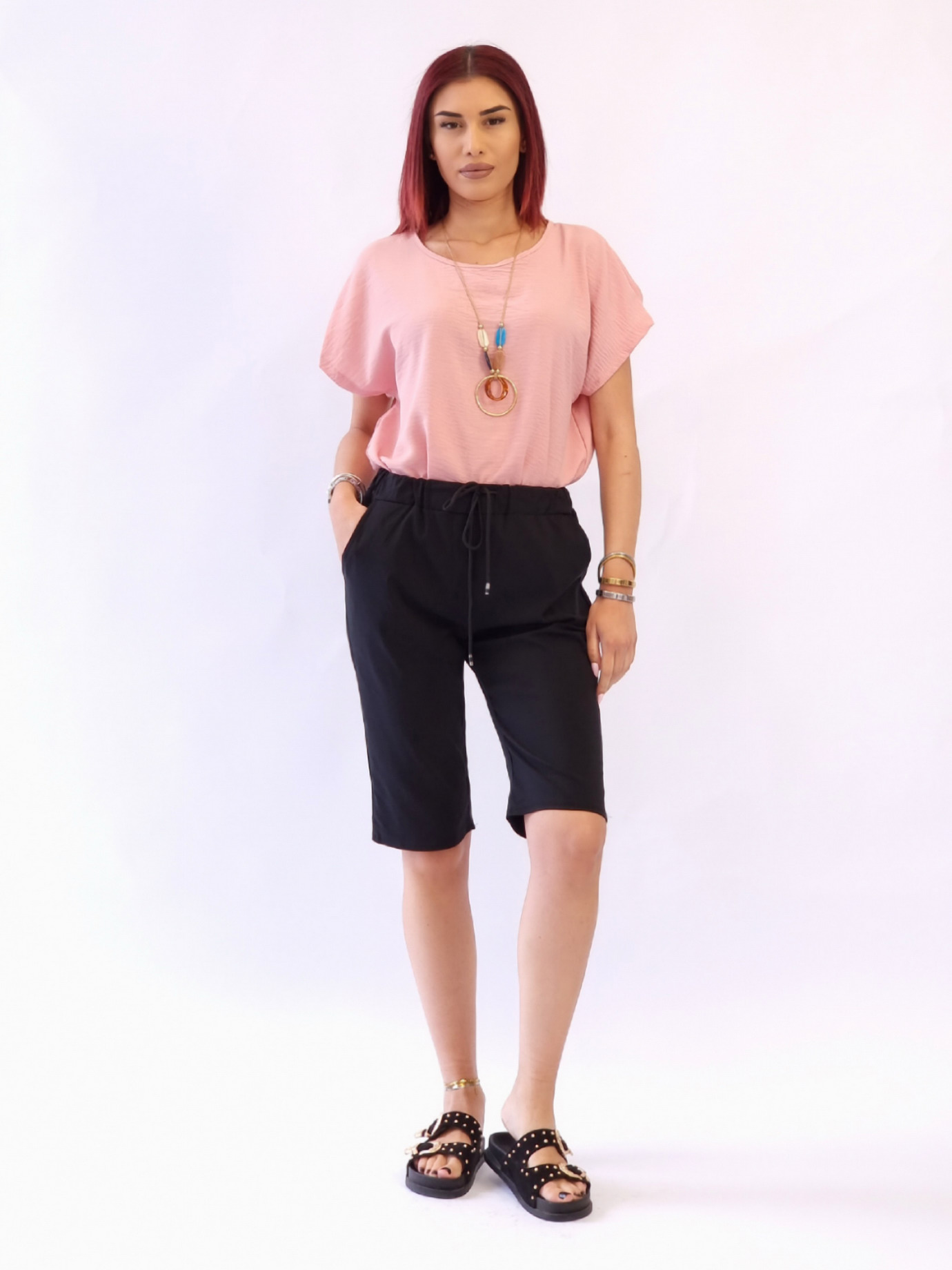 • Βερμούδα με λάστιχο στη μέση-Μαύρο