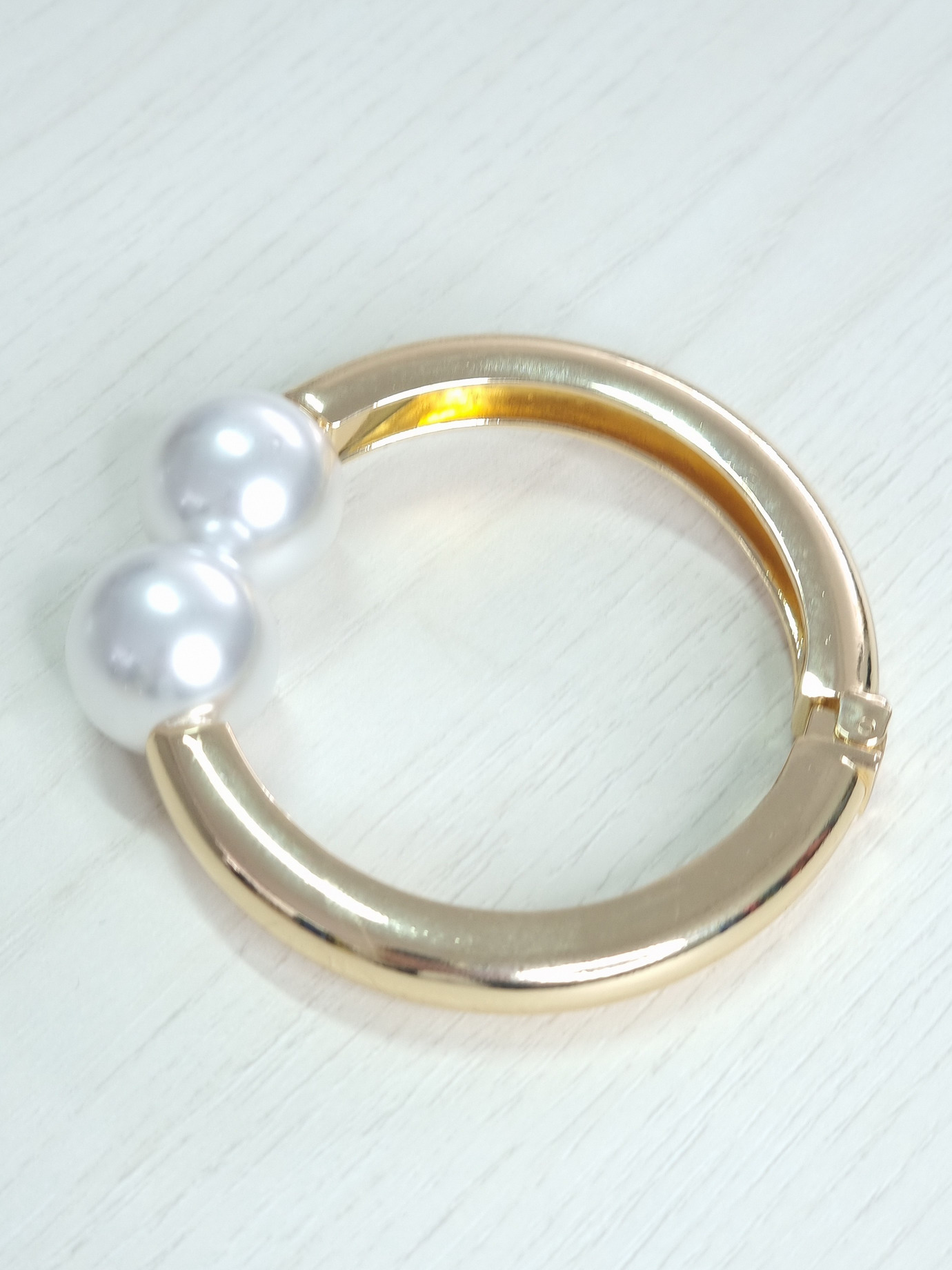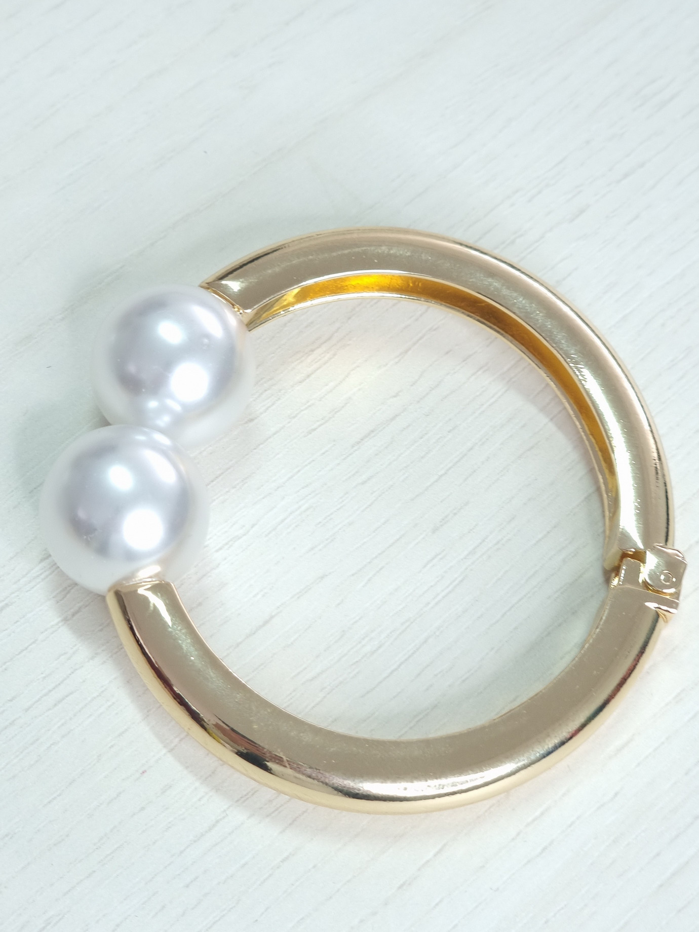 Βραχιόλι χειροπέδα ατσάλι με διπλή πέρλα