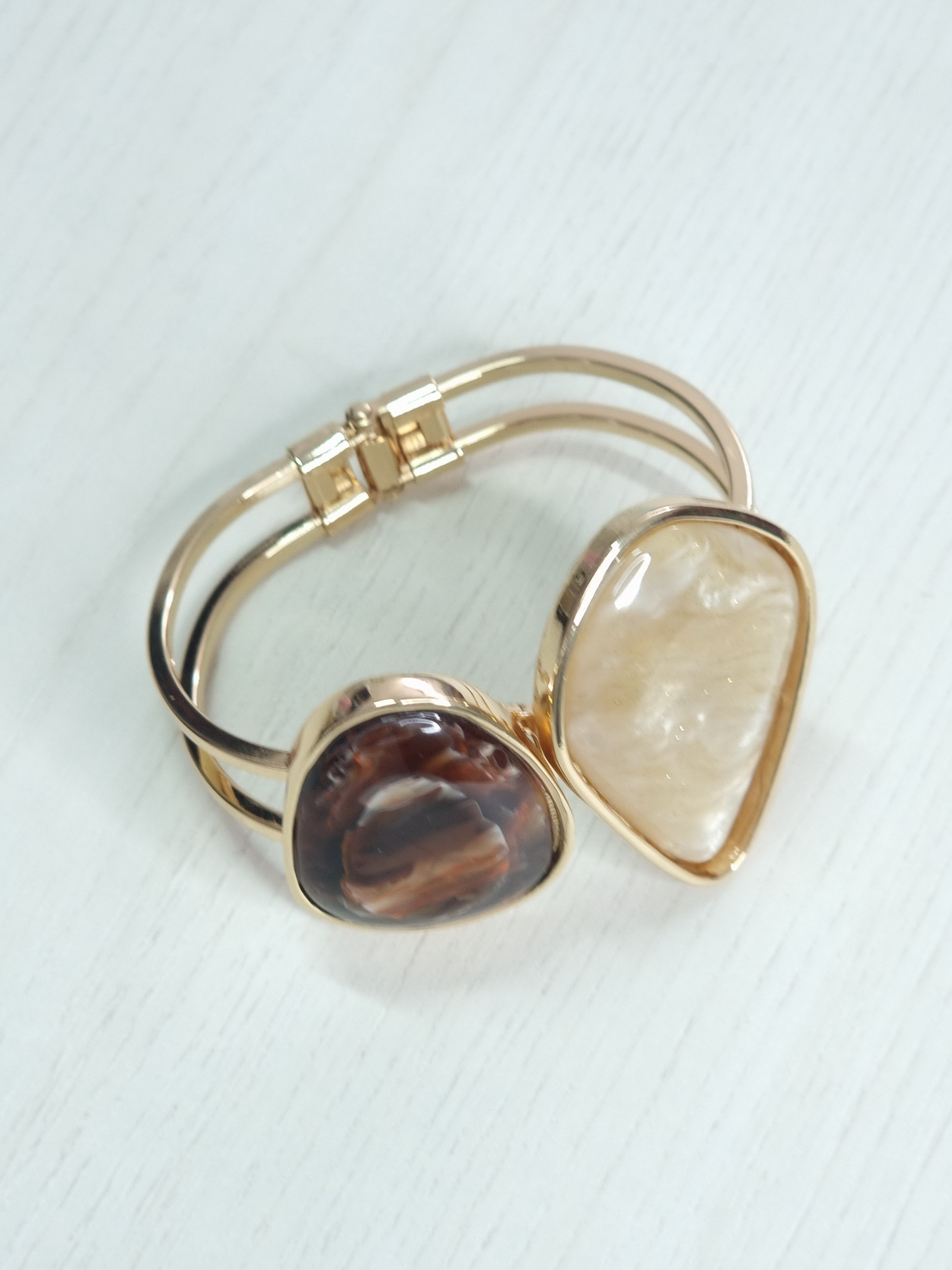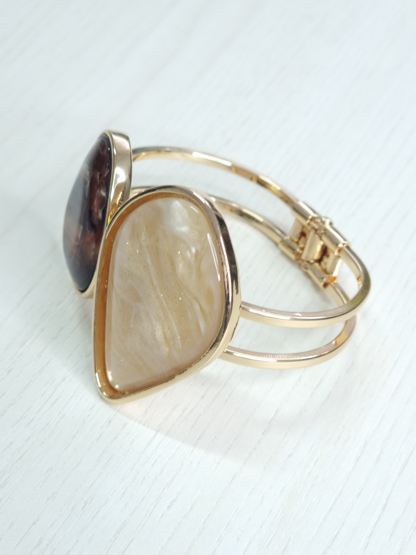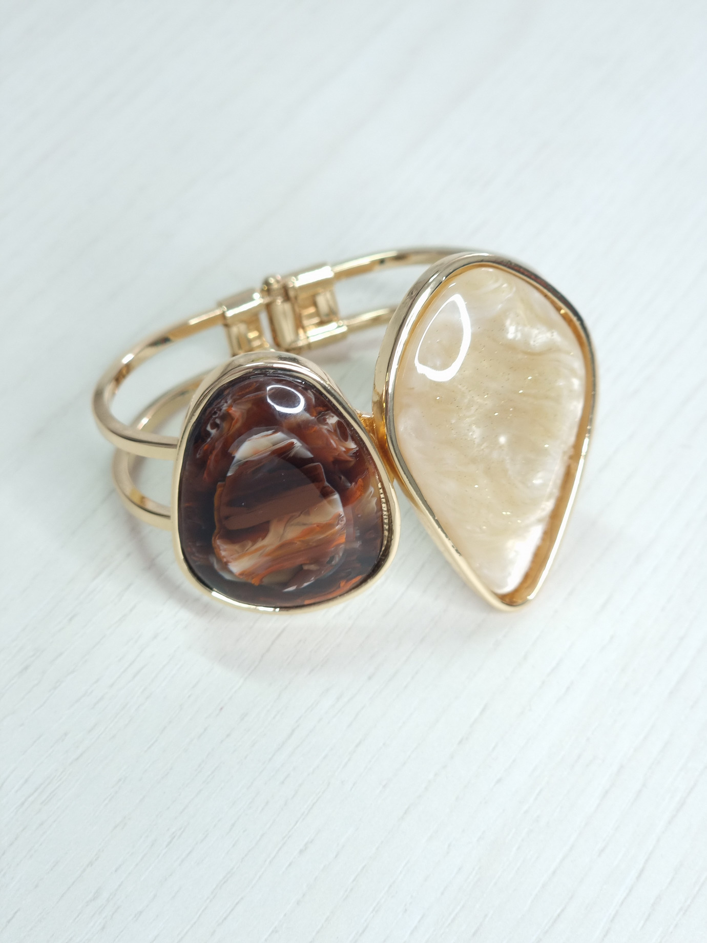 • Βραχιόλι χειροπέδα χρυσό χρώμα με καφέ πέτρες ρητίνη