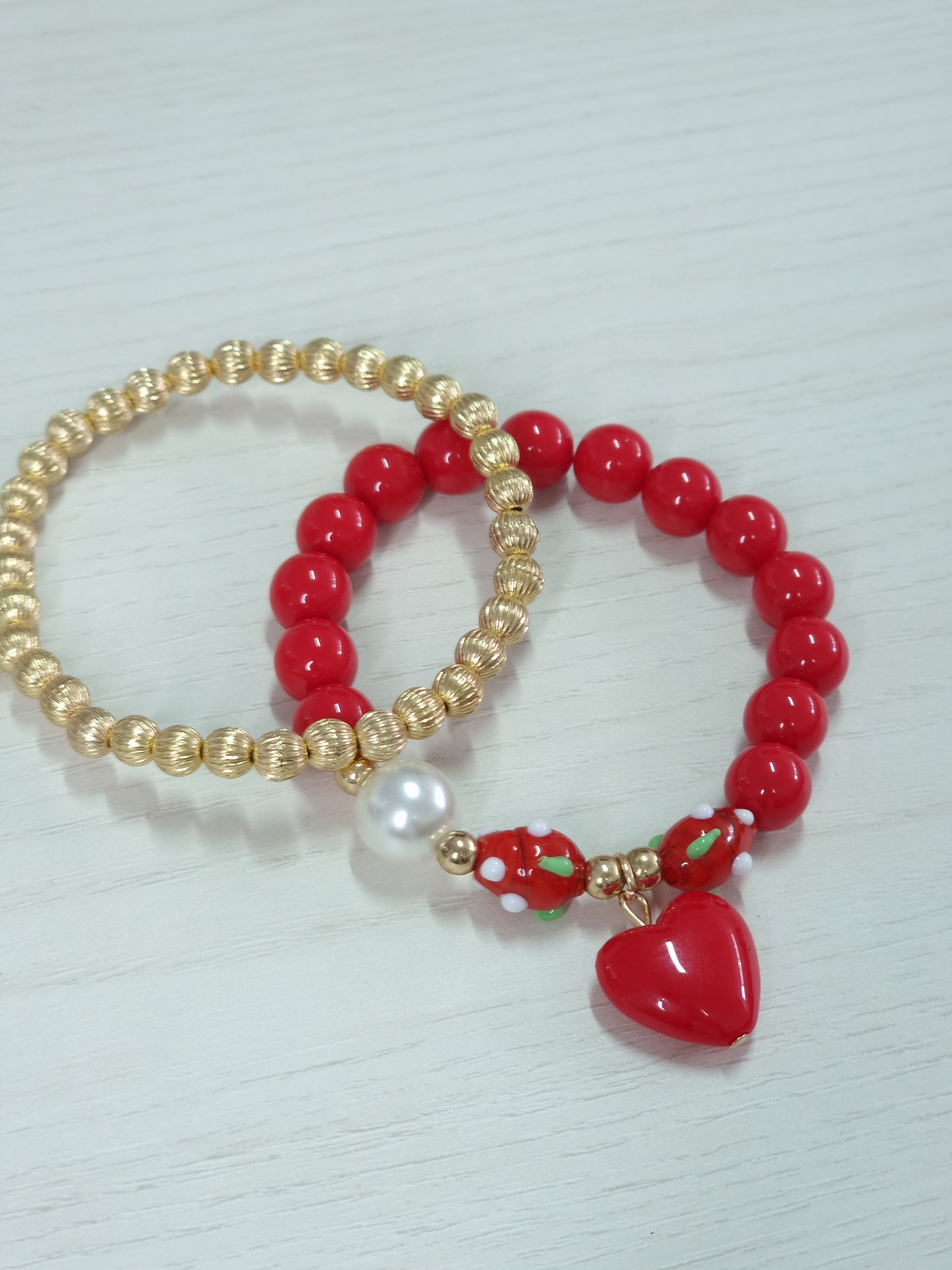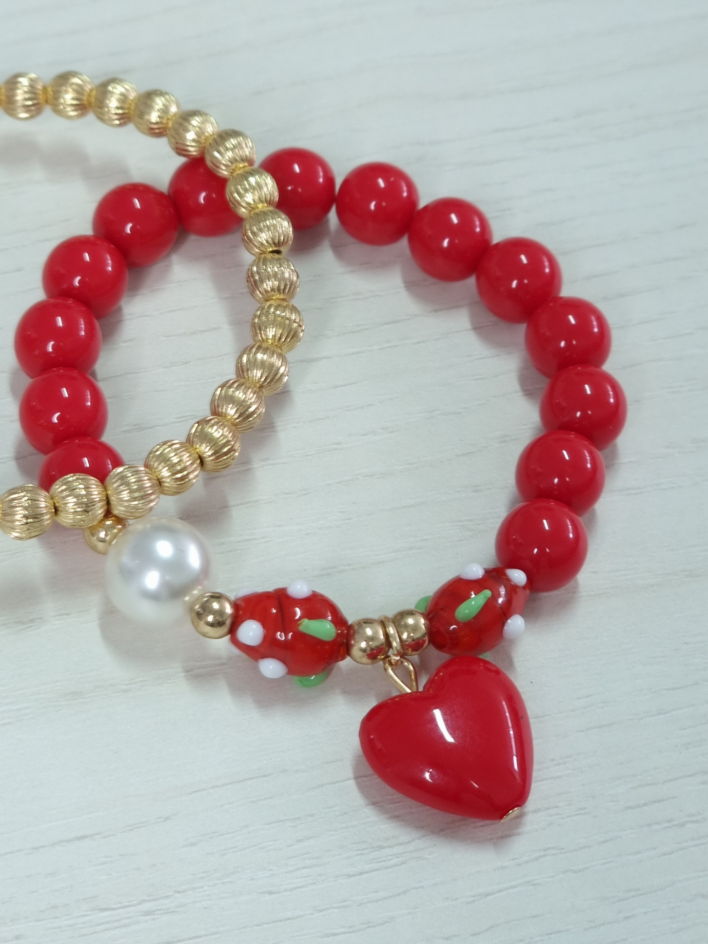 • Βραχιόλι ελαστικό διπλό με πέρλες κόκκινη καρδιά  δυο τεμάχια