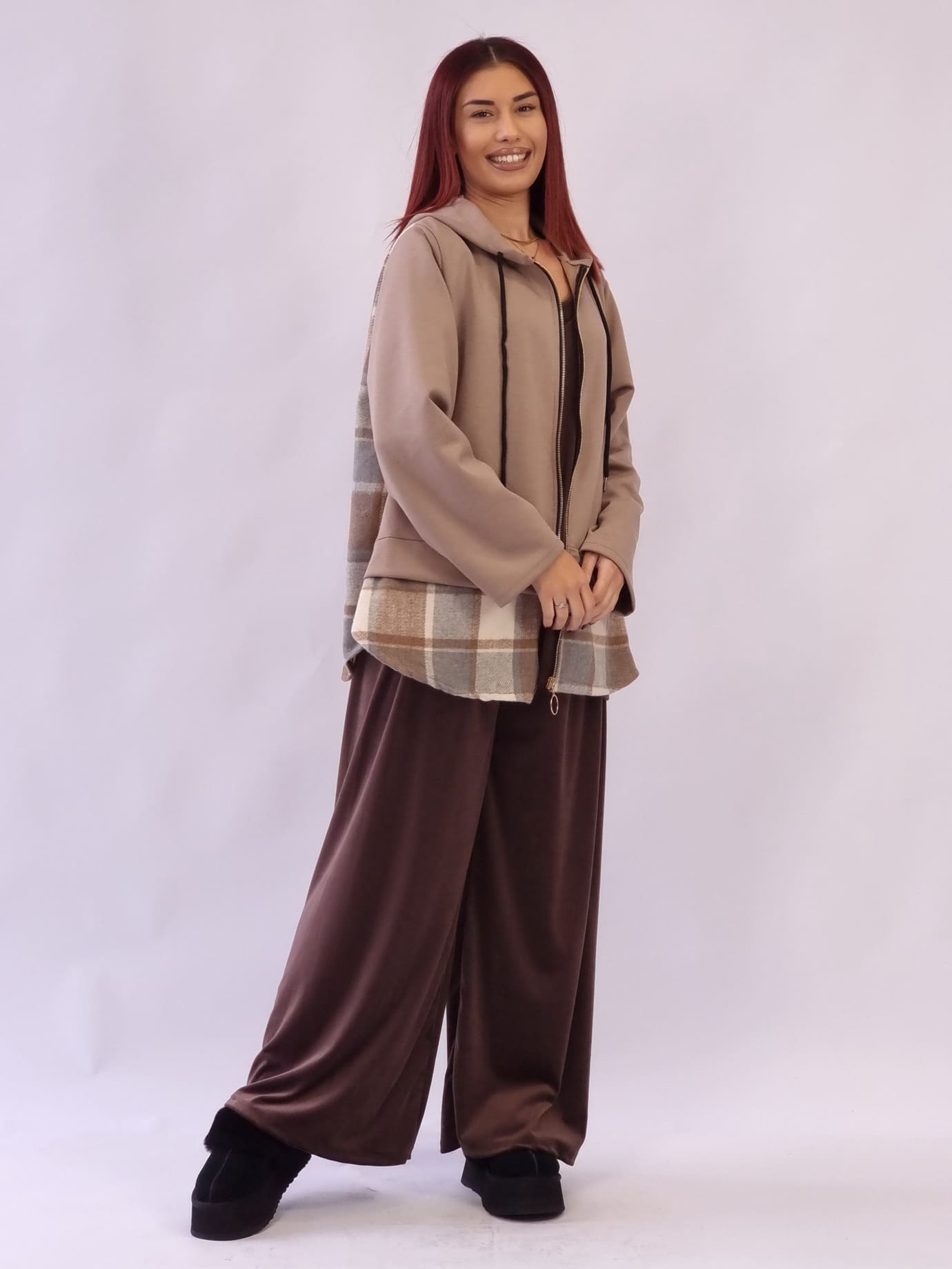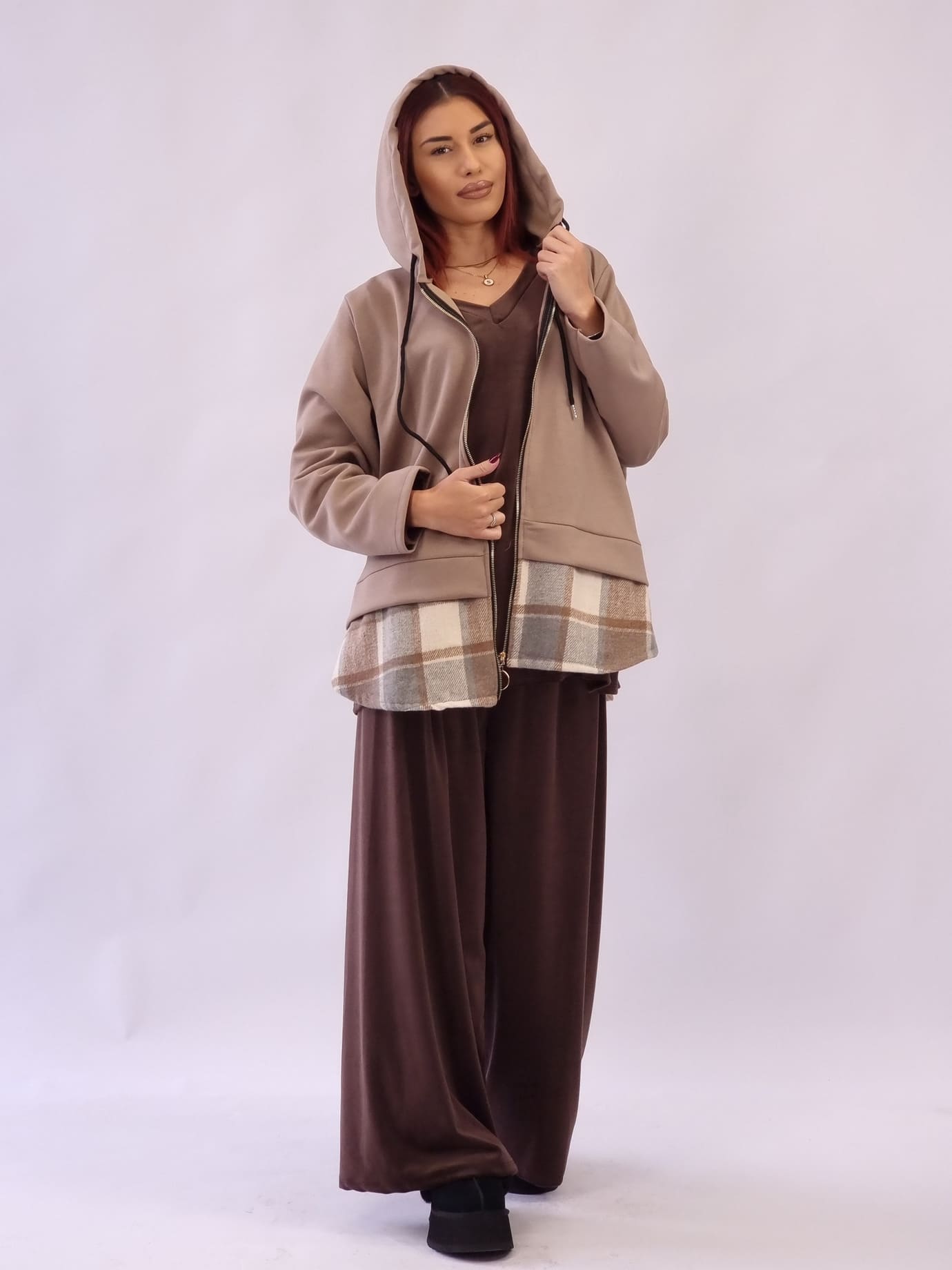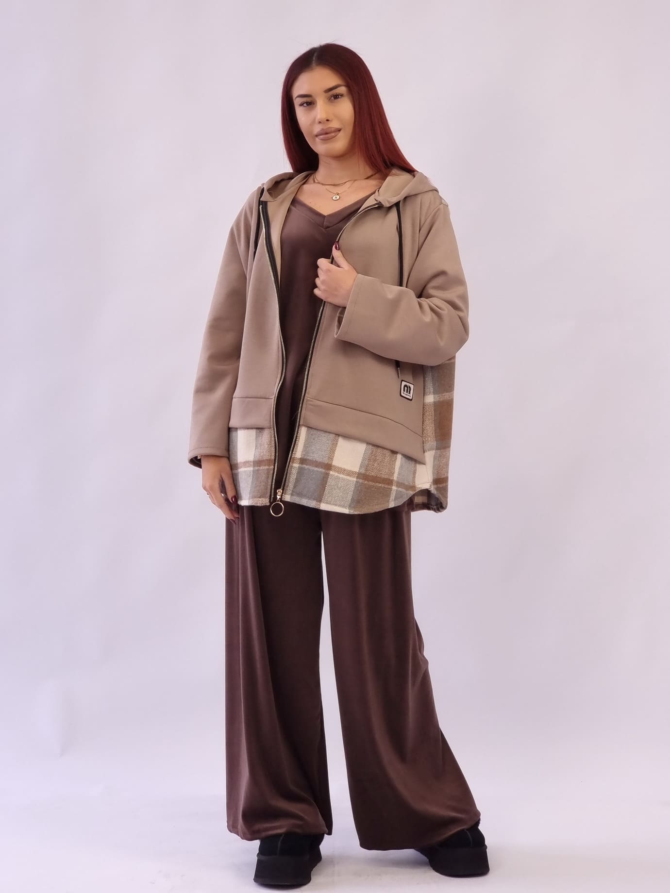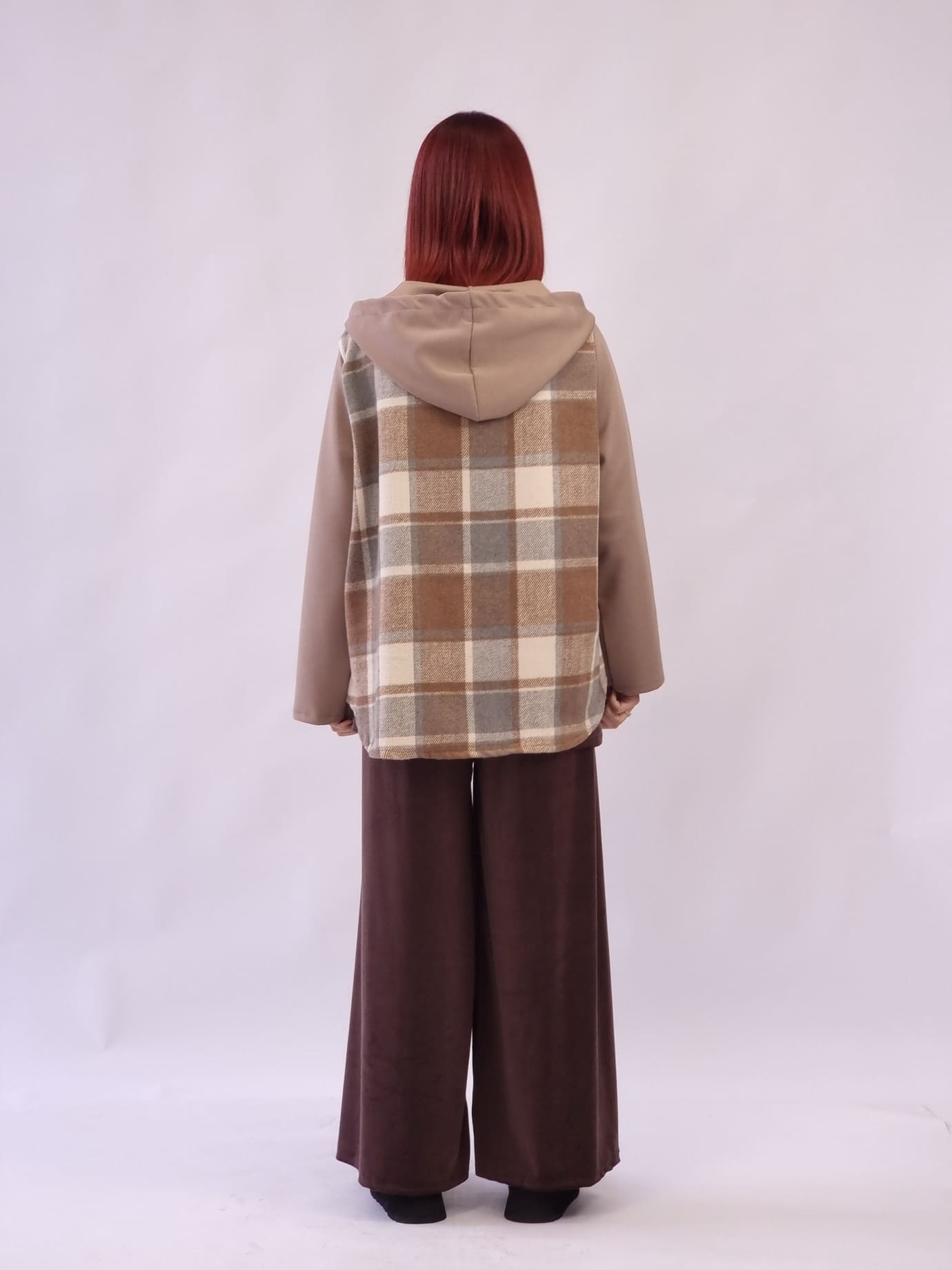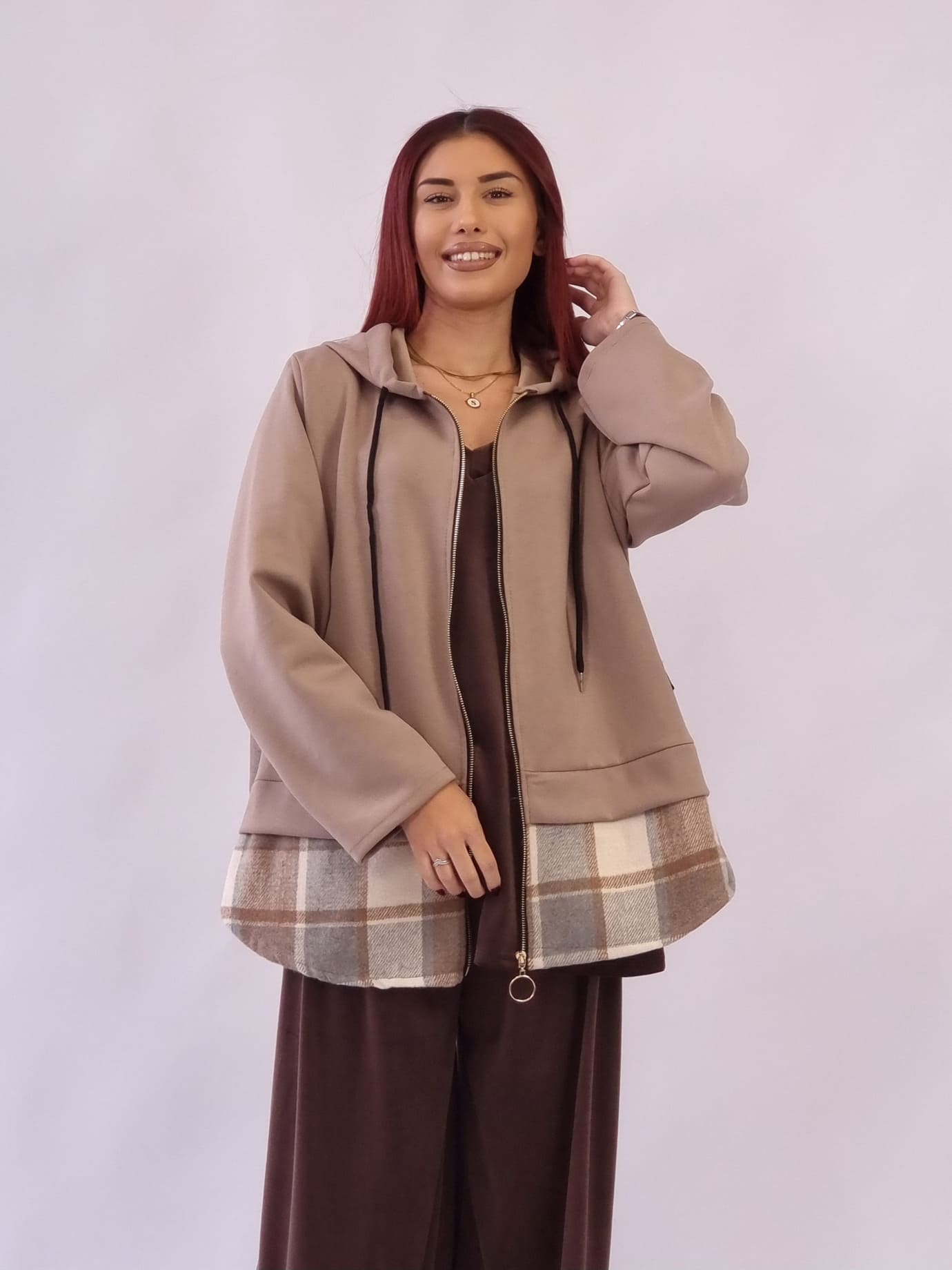 Ζακέτα Μάλλινη Καρό-Μπέζ