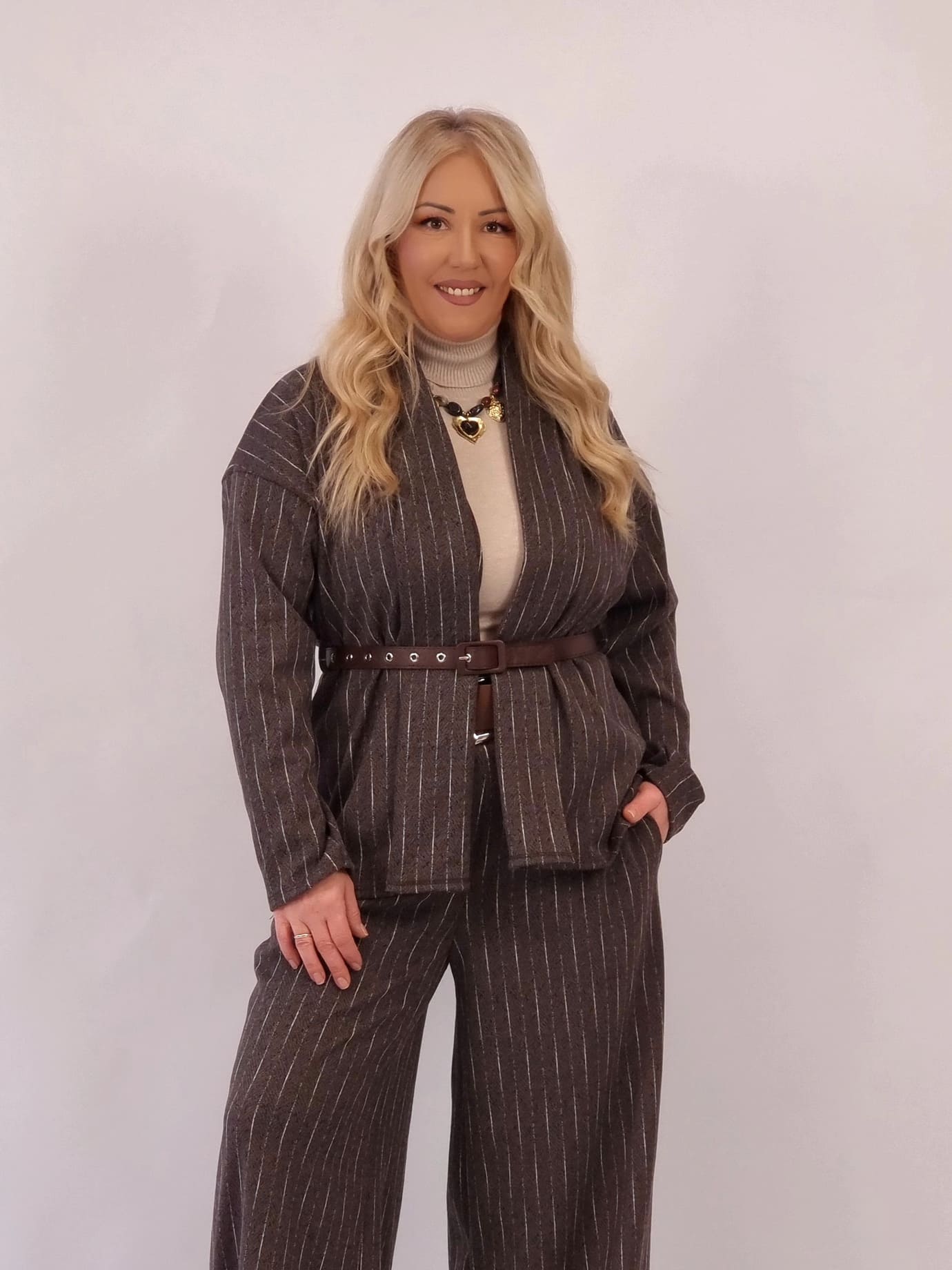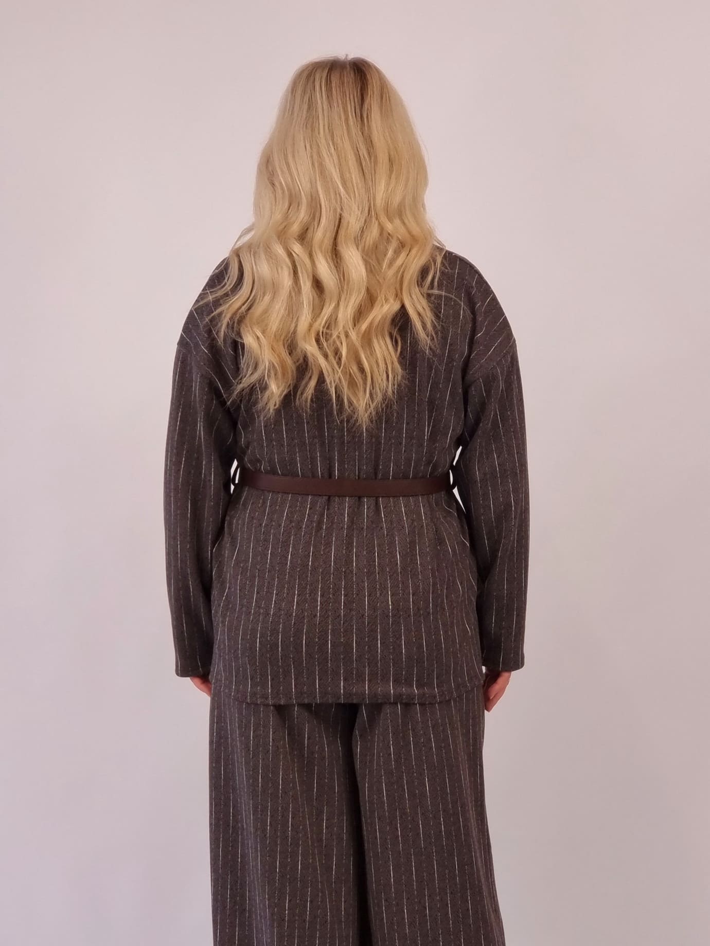 Κομψή, ζεστή και ελαφριά Έχει υφή που θυμίζει μάλλινο ύφασμα, χωρίς να “τσιμπάει” ή να βαραίνει. Δεν διαθέτει βάτες ή φόδρα, ώστε να κάθεται φυσικά πάνω στο σώμα συνδυάζει άνεση και στυλ