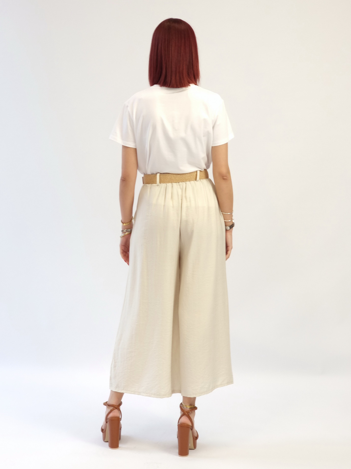 Ζιπ κιλότ βισκόζη με λάστιχο-Εκρού