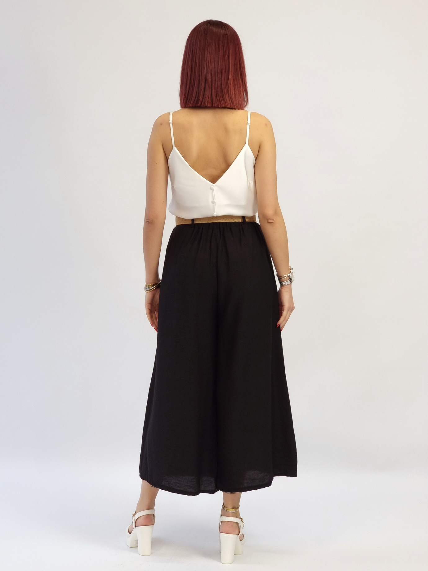 Ζιπ κιλότ βισκόζη με λάστιχο-Μαύρο