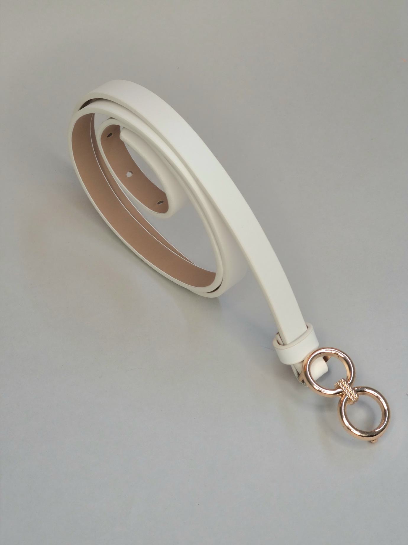 • Λευκή ζώνη λεπτή δερματίνη με αγκράφα  χρώμα χρυσό