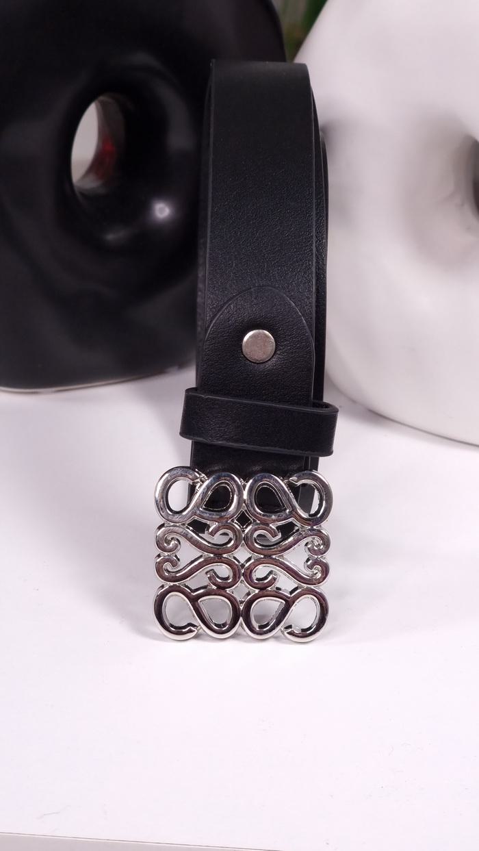 • Μαύρη Ζώνη δερματίνη με ασημί αγκράφα.