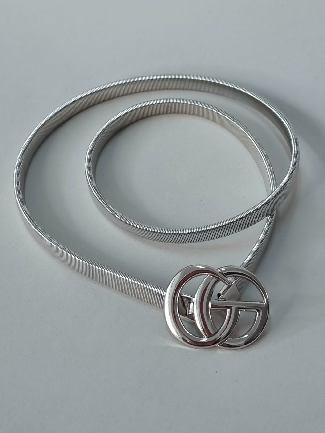 Ελαστική ζώνη με μεταλλική αγκράφα, που τονίζει τη μέση και αναβαθμίζει κάθε look — από φορέματα μέχρι πλεκτά.
