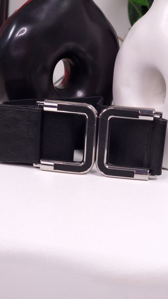 • Μαύρη  Ζώνη ελαστική με τετράγωνο τοκά με χρυσές λεπτομέρειες και δερματίνη