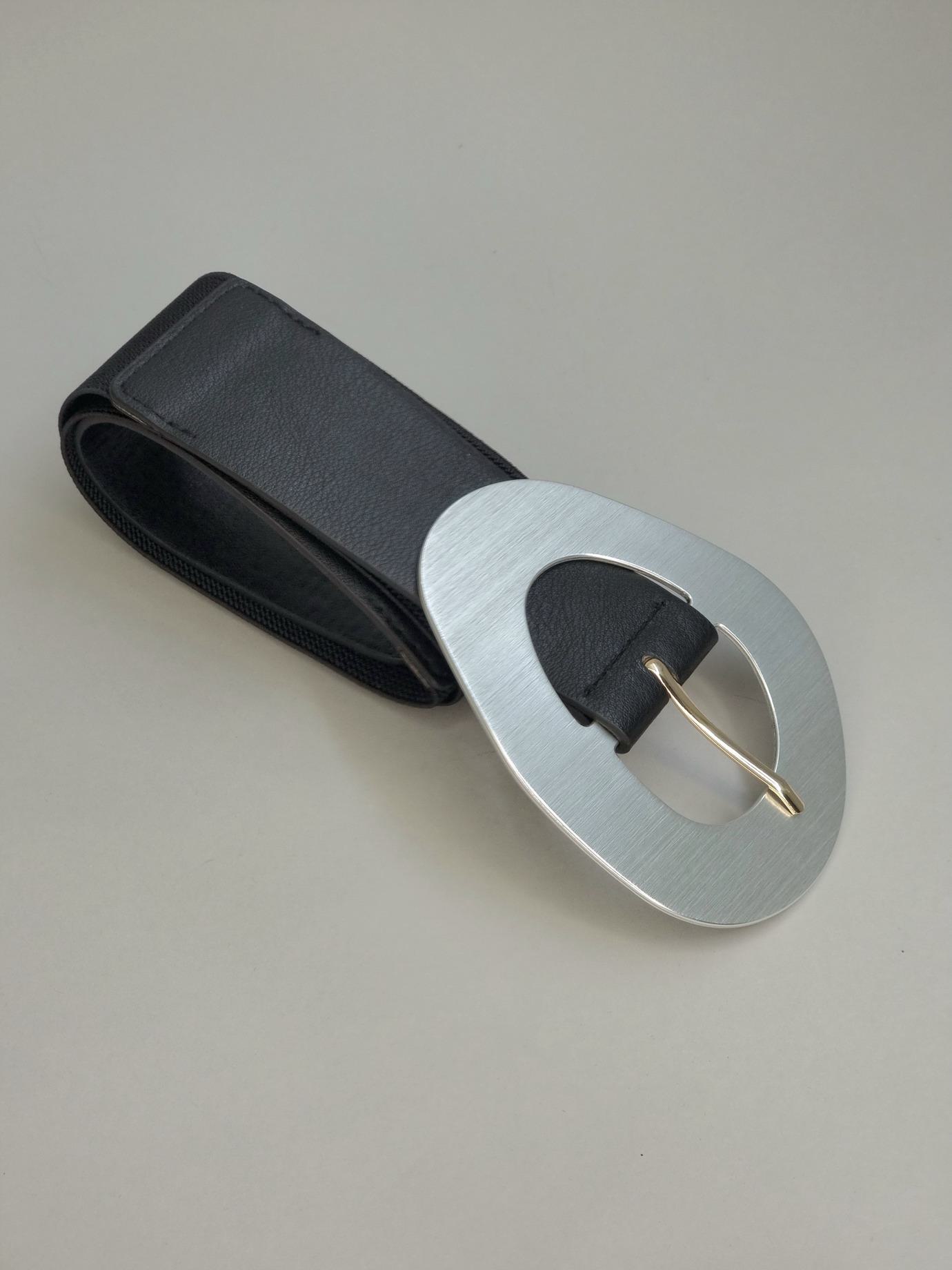 • Ζώνη ελαστική με τοκά ασημί-Μαύρο
