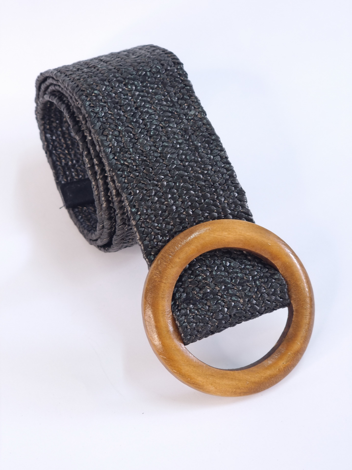 • Μαύρη ελαστική ζώνη με ξύλινο τοκά.