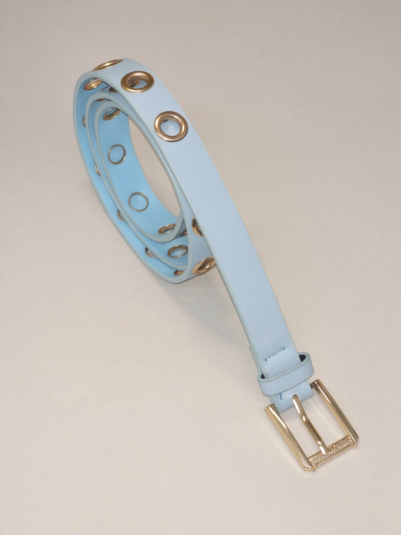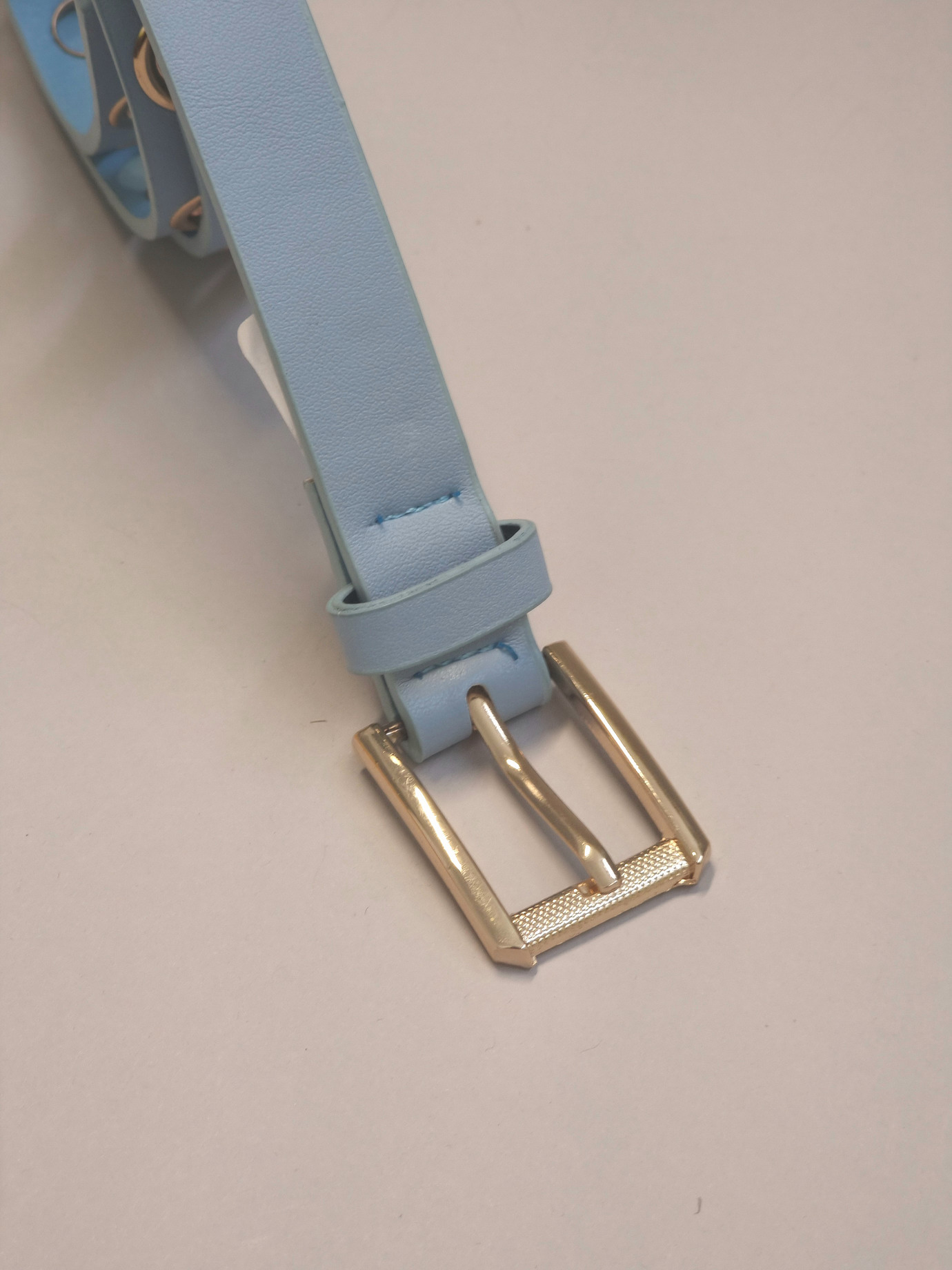 • Ζώνη δερματίνη χρώμα σιέλ και χρυσές λεπτομέρειες κρικάκια