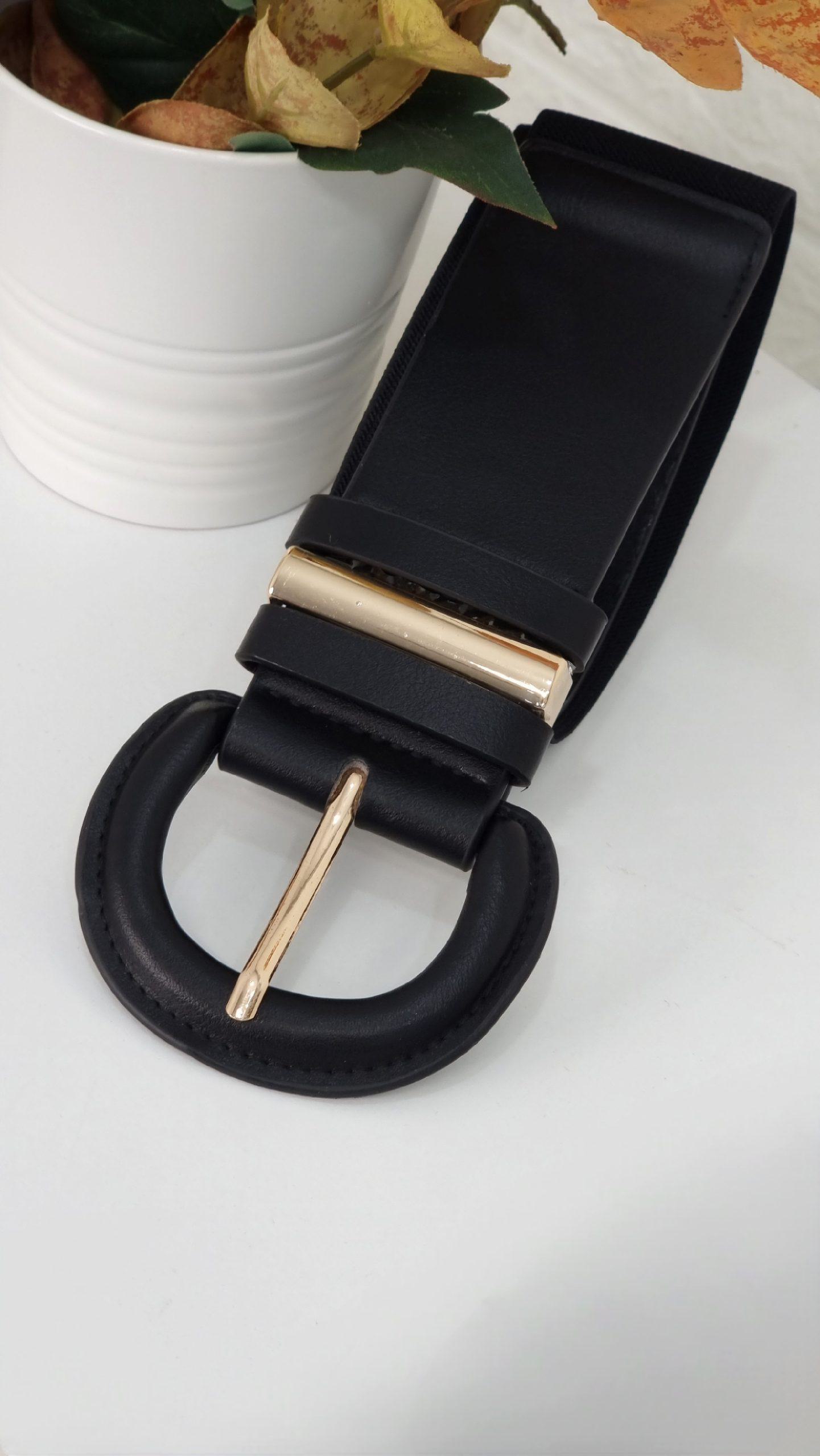 Ζώνη φαρδιά ελαστική μαύρη με λεπτομέρεια χρυσή και δερματίνη μόνο μπροστά.